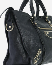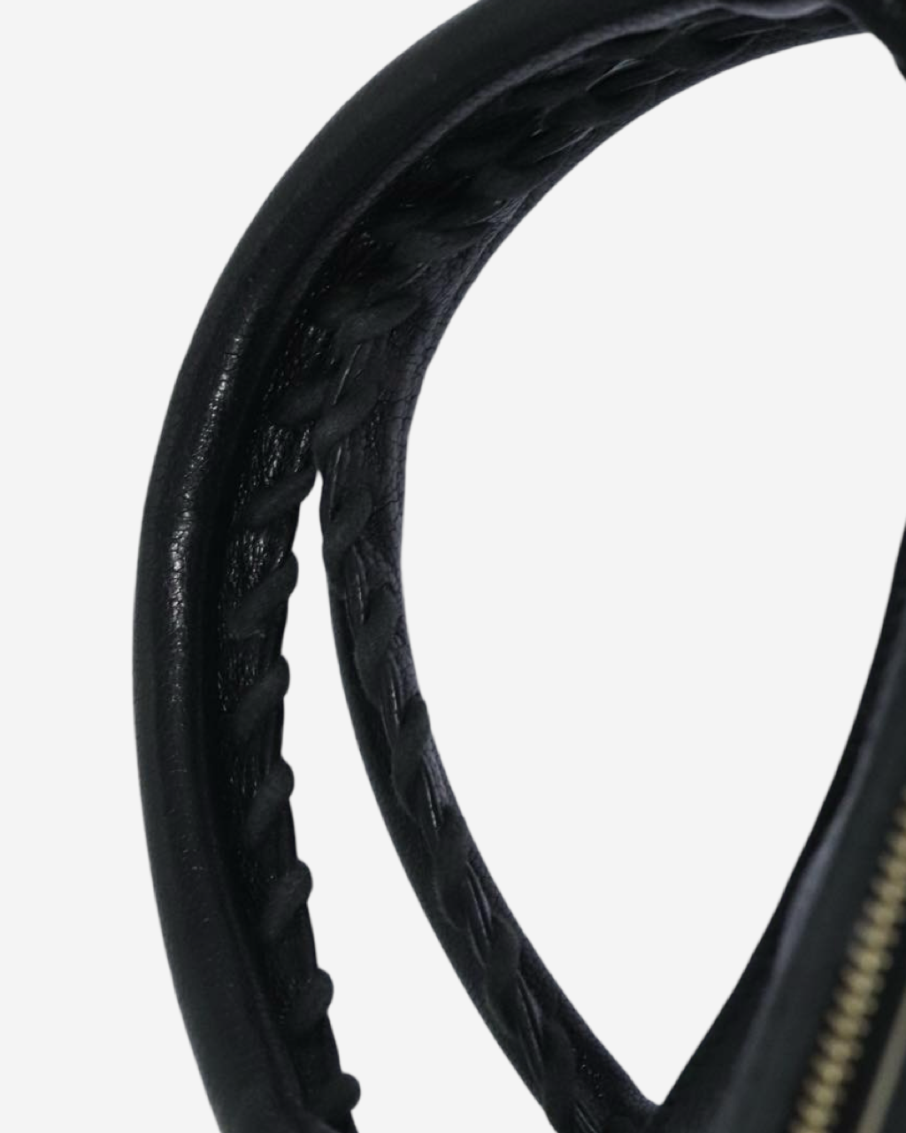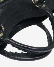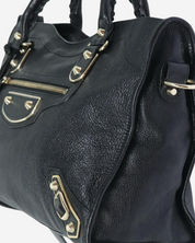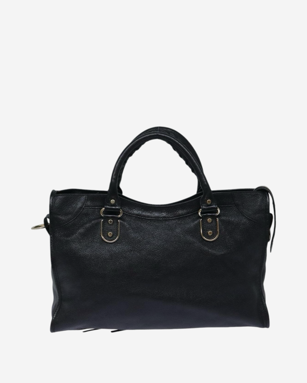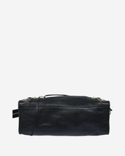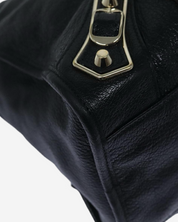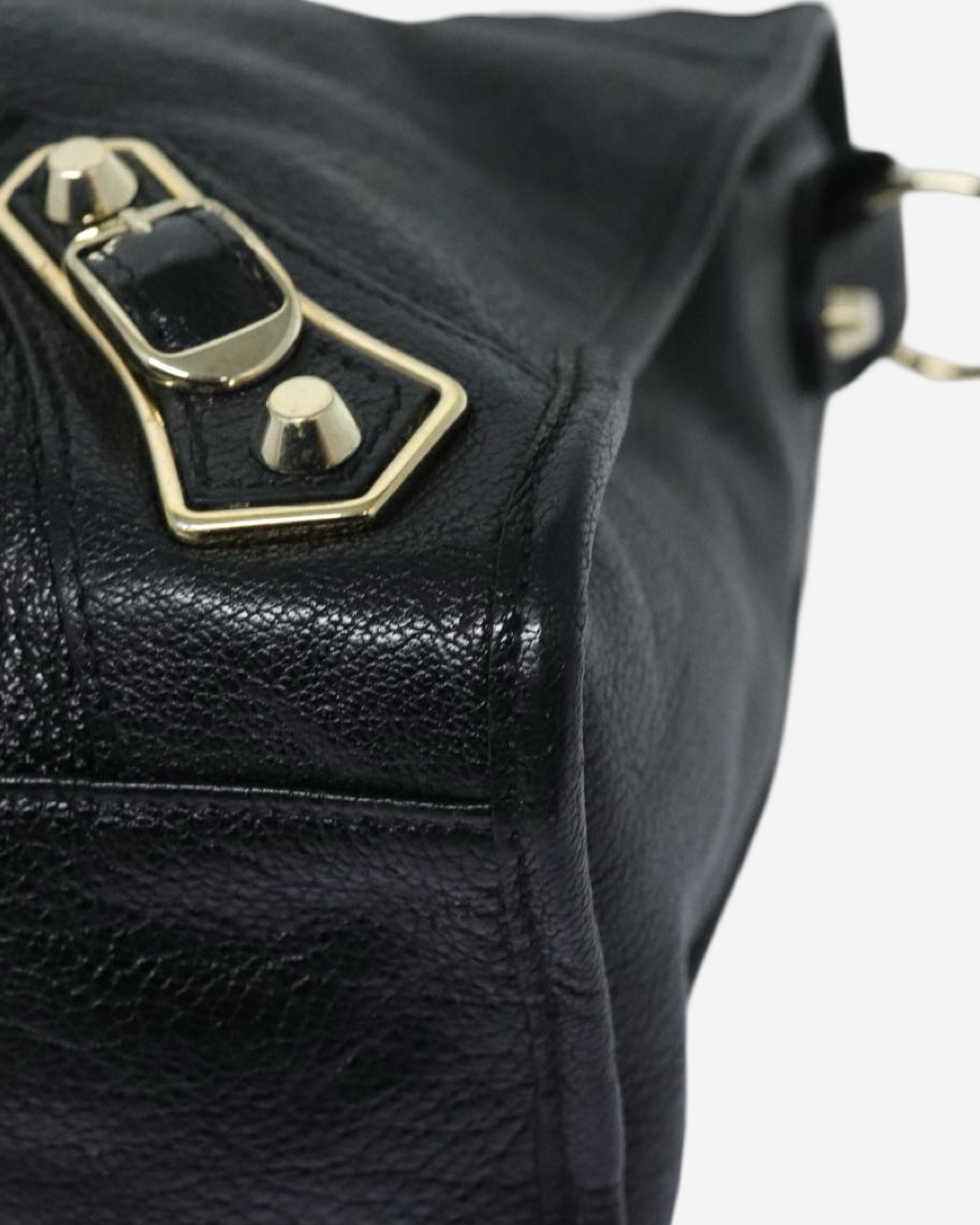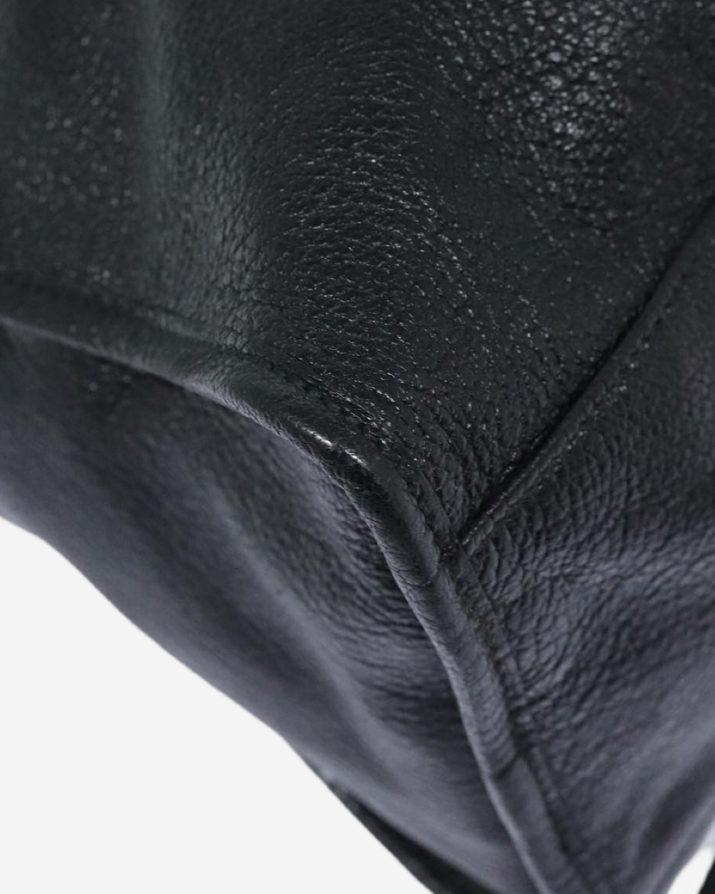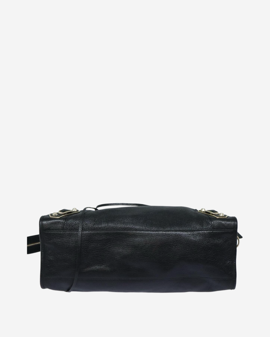 • Descripción: Bolsa de mano con doble asa fija, bolsillo frontal con cierre, cierre al tope, forro textil, hardware efecto envejecido