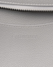 - Descripción: Bolsa de mano con doble asa fija larga, bolsillo frontal con cierre, cierre al tope, forro textil, hardware plateado