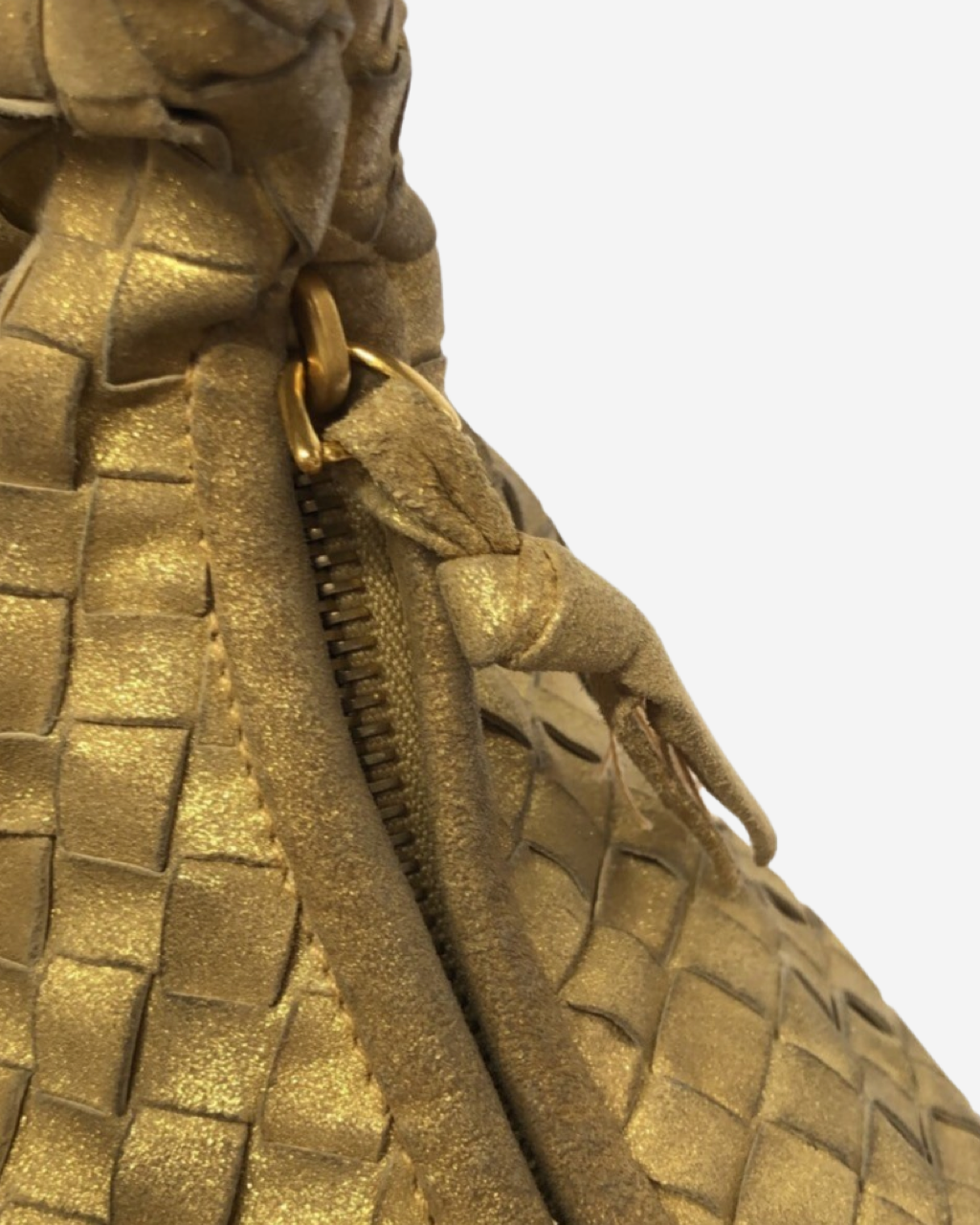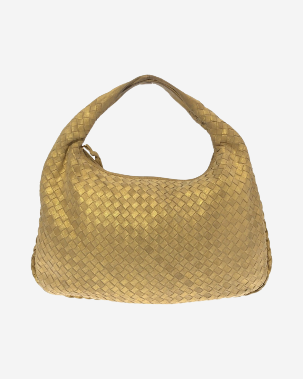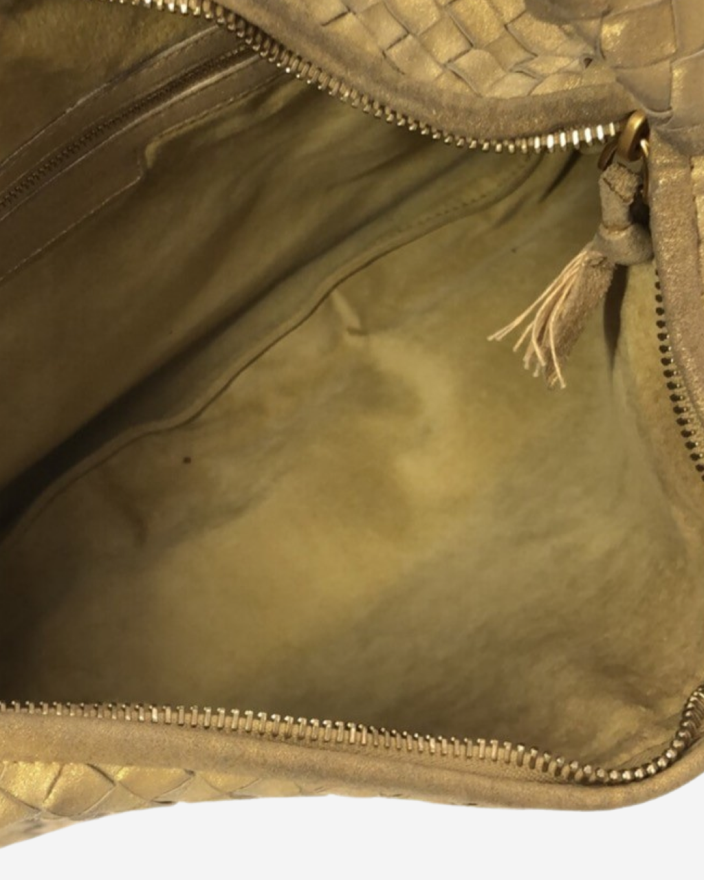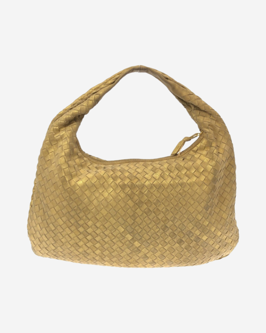 • Descripción: Bolsa de hombro tamaño mediano con diseño Intrecciato, un asa superior y compartimento principal.