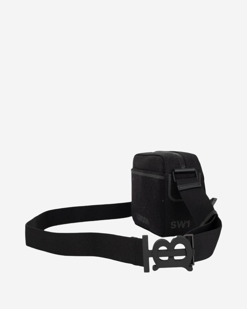 • Descripción: Bolsa crossbody en color negro con print del logo, bolsillo frontal, strap con logo característico en tono negro, strap largo, hardware color negro