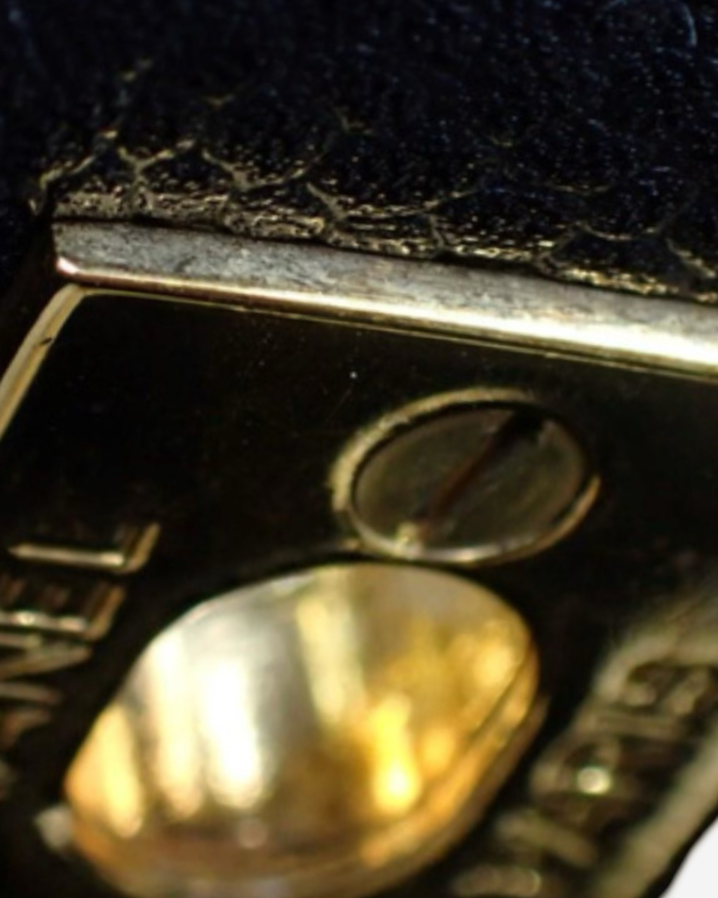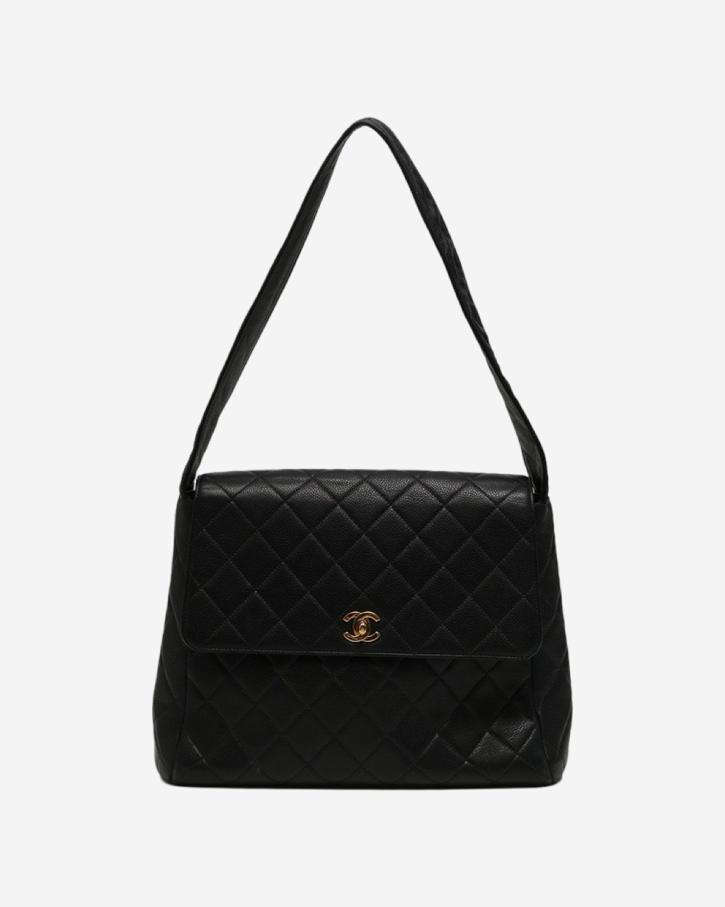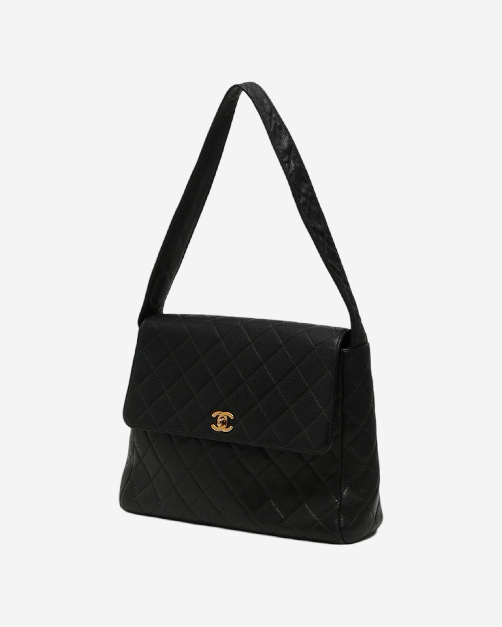 • Descripción: Bolsa de hombro classic flap en color negro, broche CC Turn Lock en baño de oro de 24k, interior en color negro, hardware color dorado
