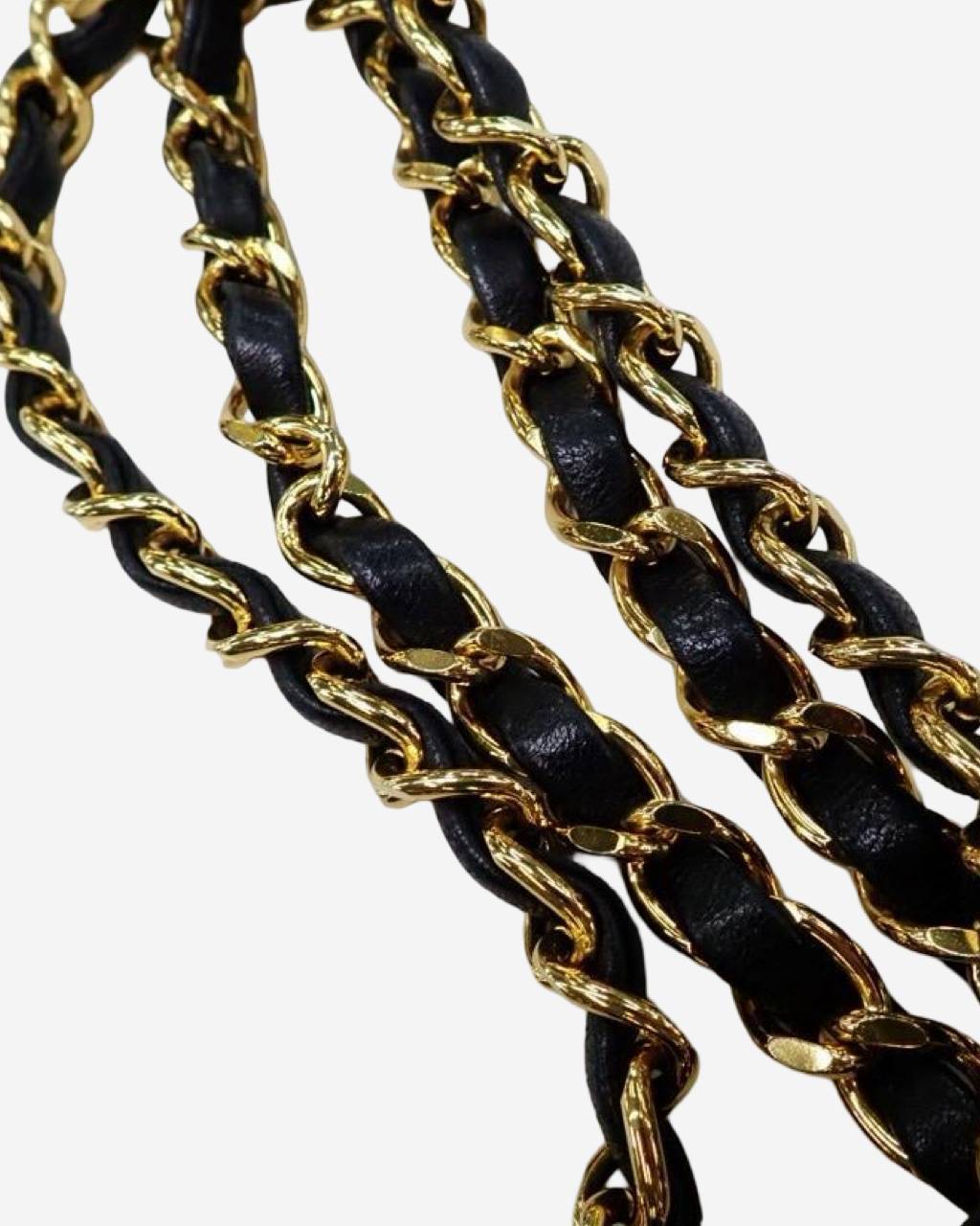 • Descripción: Bolsa de hombro en piel color negro, broche CC turnlock característico con baño de oro de 24k, abertura principal con solapa, asa movible de cadena, forro interior en piel, hardware en tono dorado
