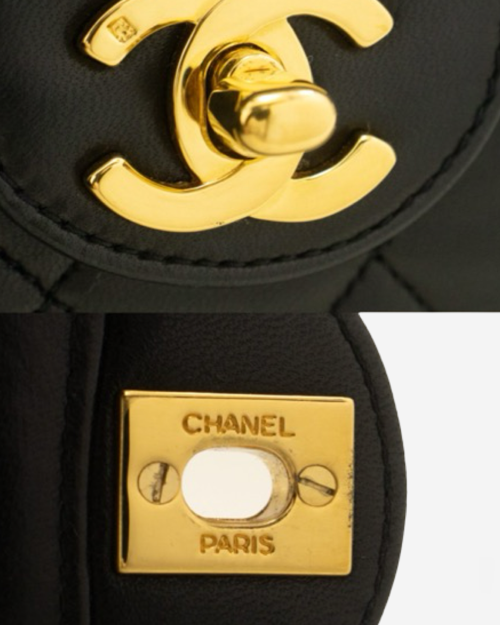 - Descripción: Bolsa de hombro en color negro, broche CC turnlock, interior en color vino, broche baño de oro 24k, hardware color dorado