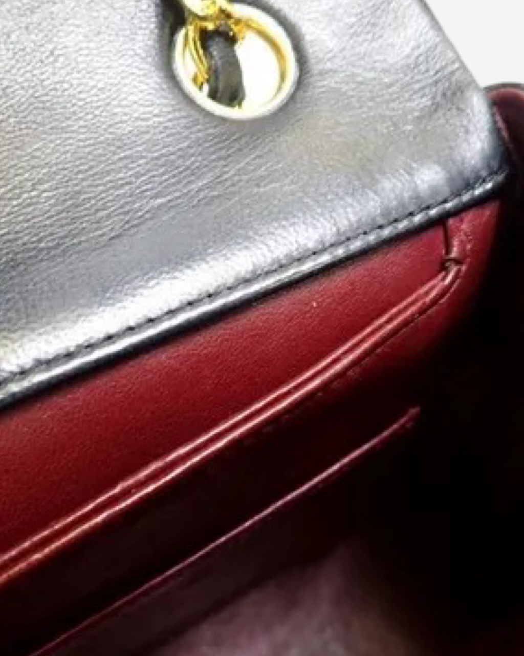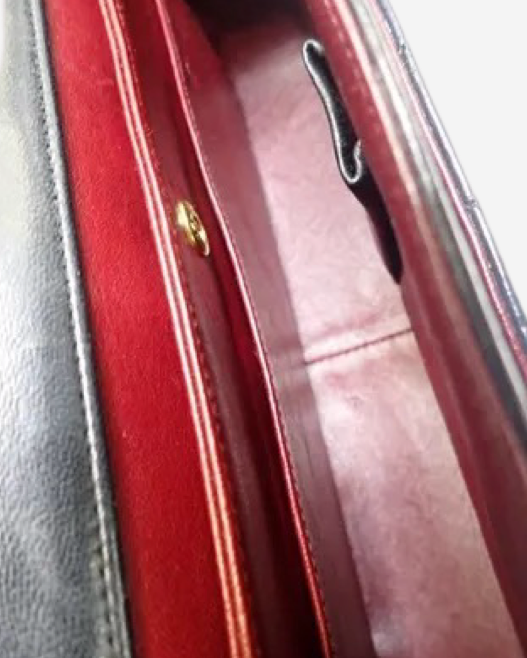 • Descripción: Bolsa de hombro classic flap en color negro, cierre CC Turn Lock, interior en color vino, hardware color dorado, cartera extra