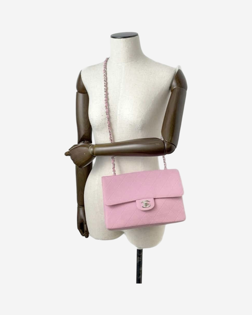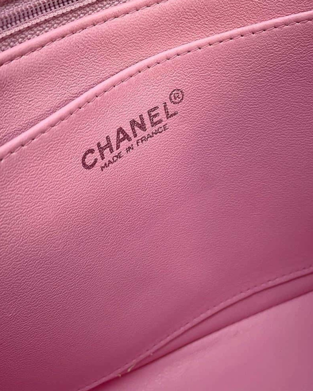 - Descripción: Bolsa de hombro en color rosa, broche CC interior en piel color rosa, hardware color plateado