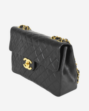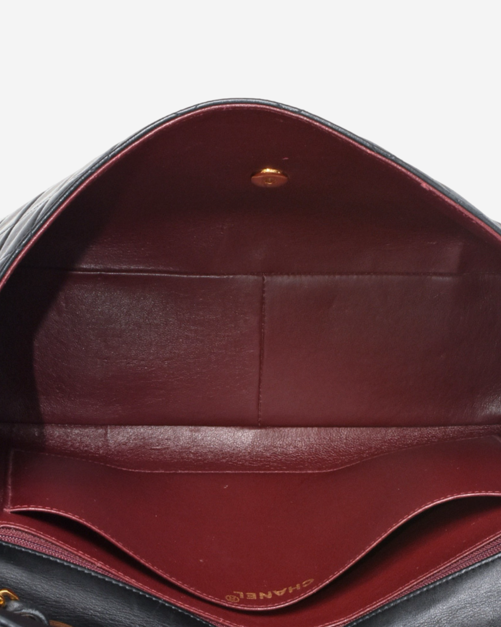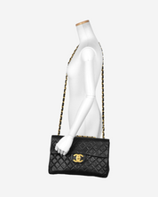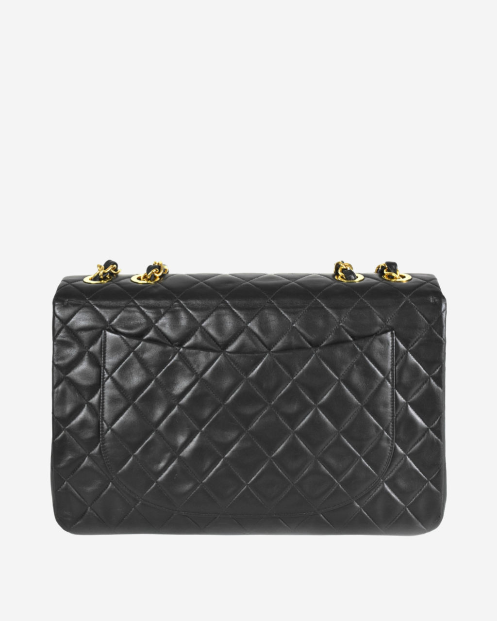 • Descripción: Bolsa de hombro classic flap jumbo  en color negro, cierre CC Turn Lock, interior en color vino, broche oro 24k matelassé, hardware color dorado