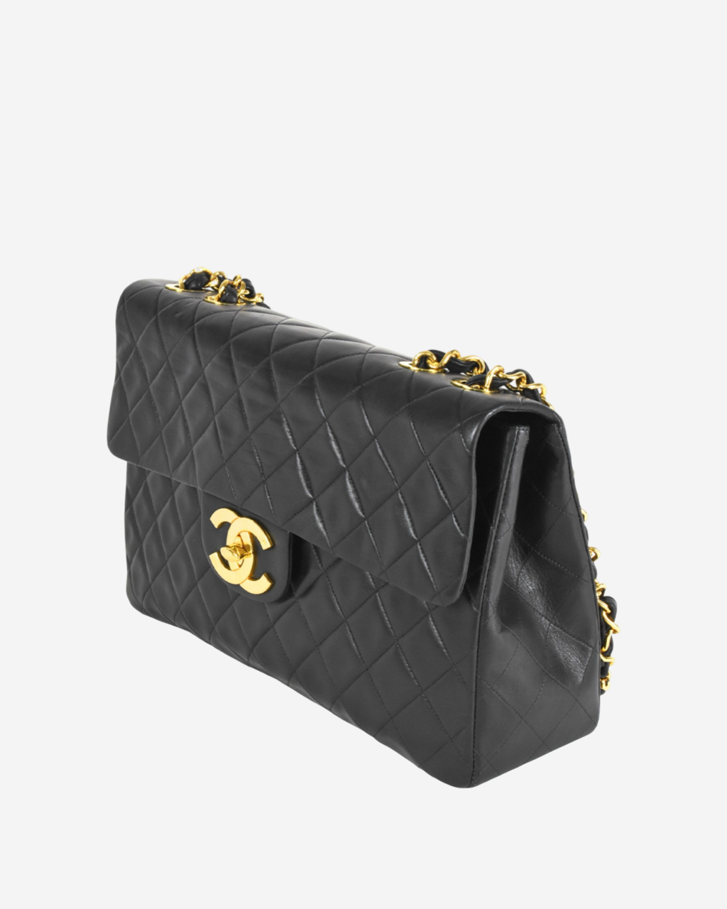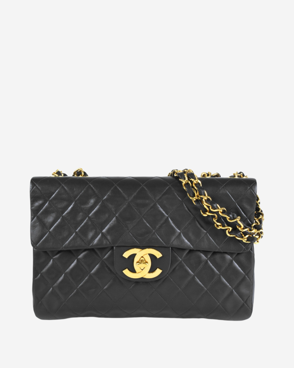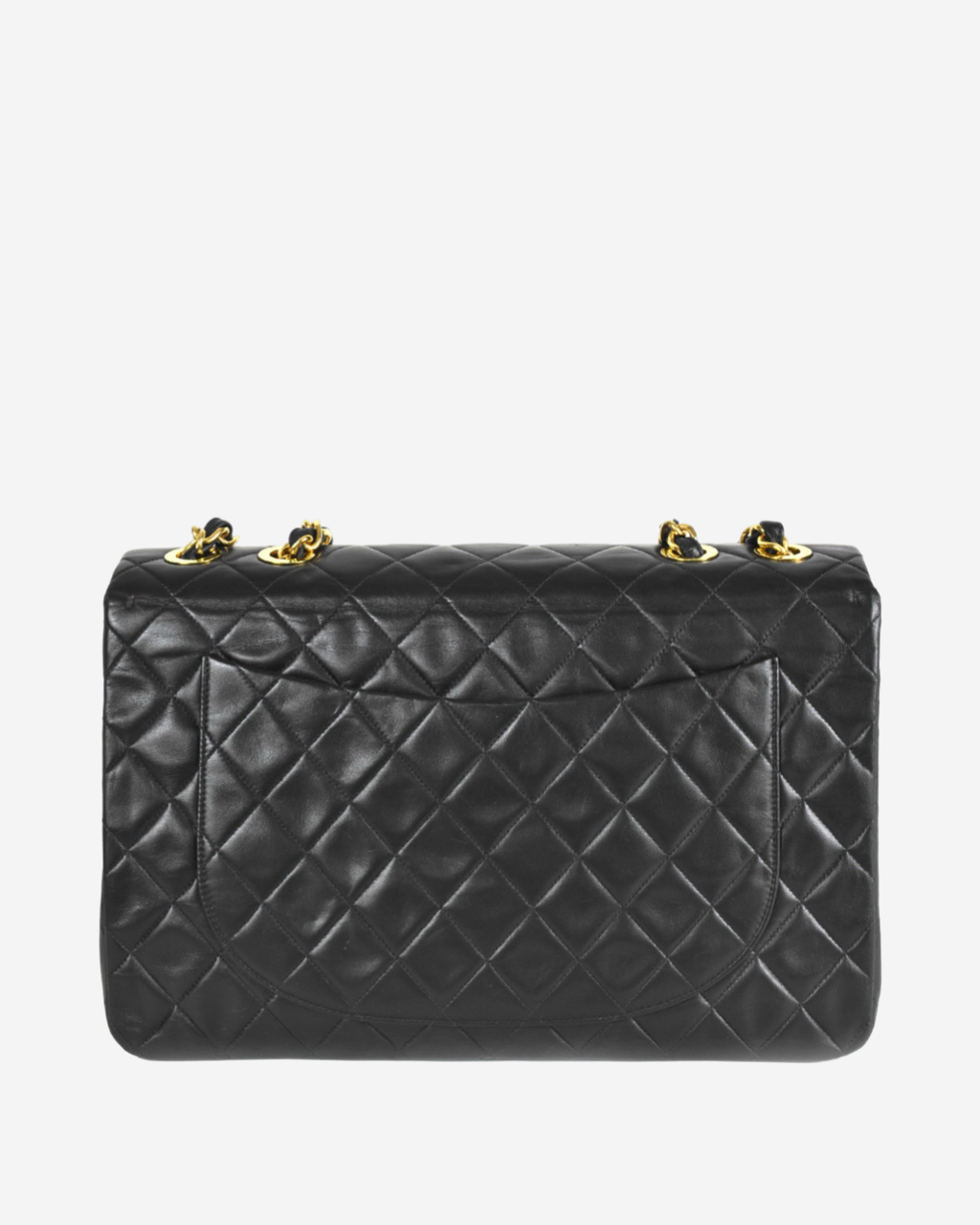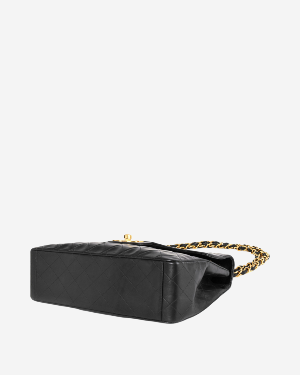 • Descripción: Bolsa de hombro classic flap jumbo  en color negro, cierre CC Turn Lock, interior en color vino, broche oro 24k matelassé, hardware color dorado