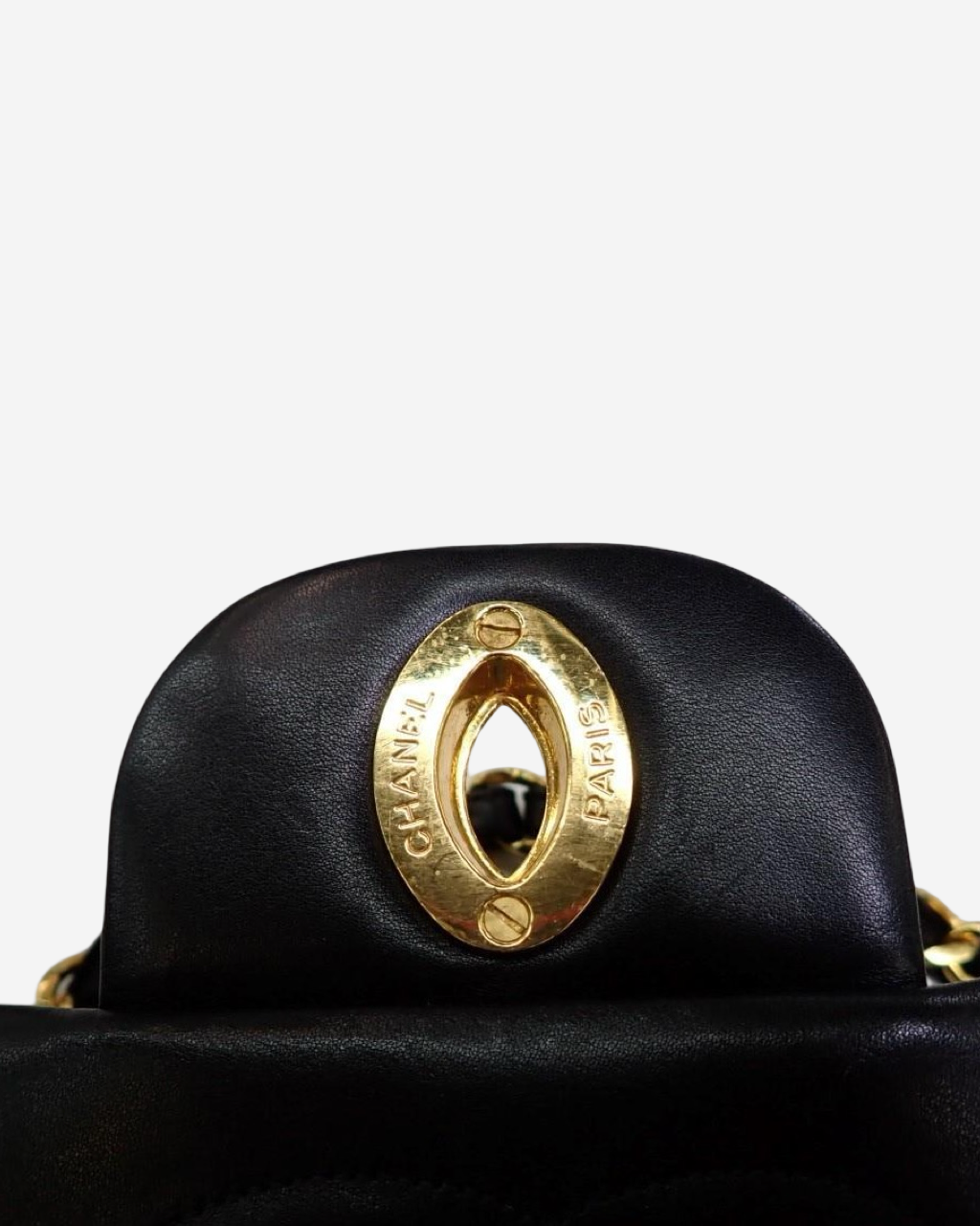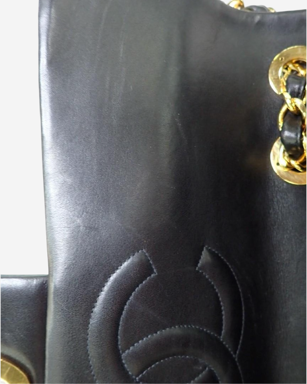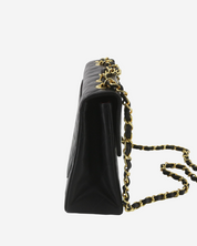 - Descripción: Bolsa de hombro en piel color negro, broche CC turnlock característico con baño de oro de 24k, abertura principal con solapa, asa movible de cadena, forro interior en piel, hardware en tono dorado
