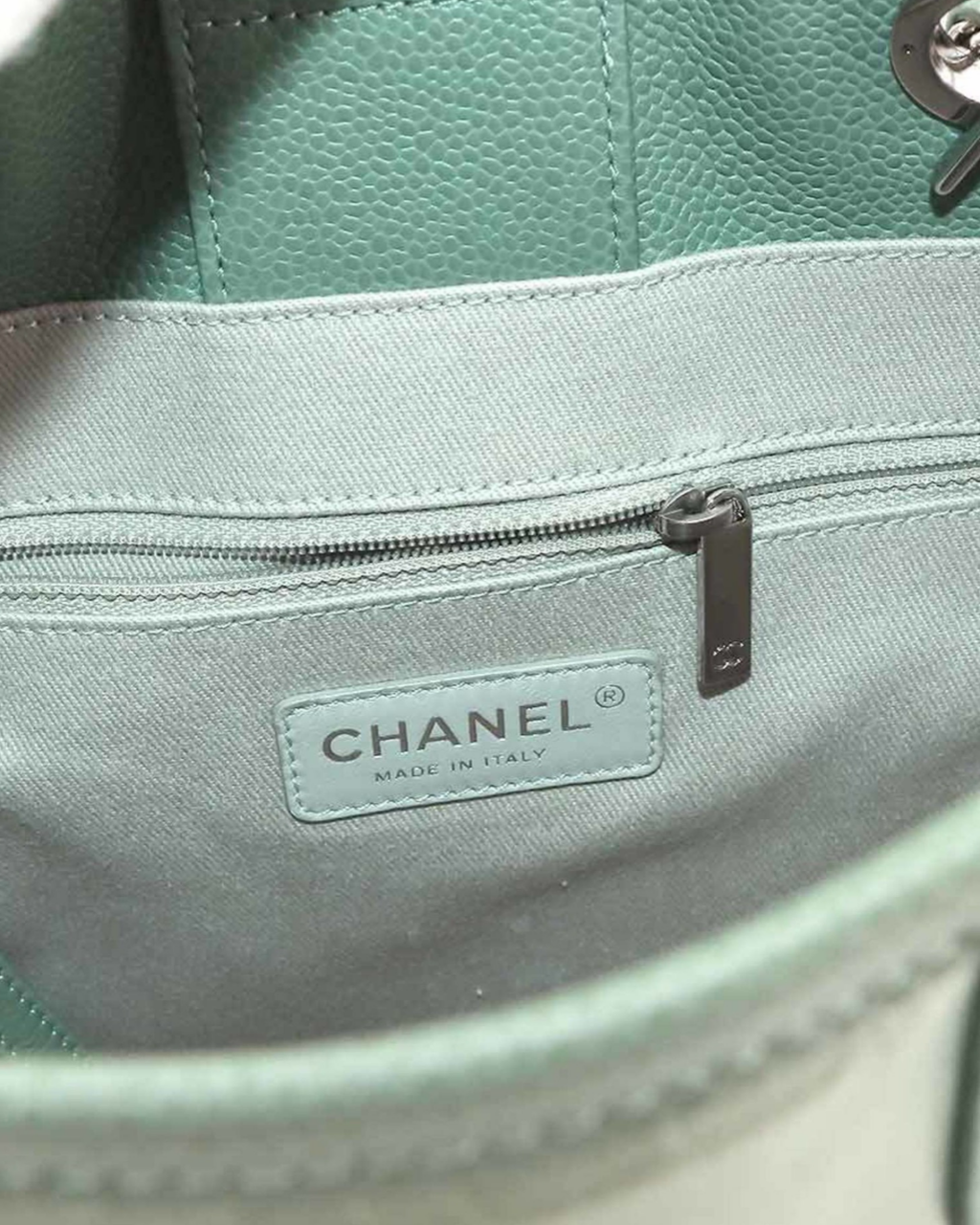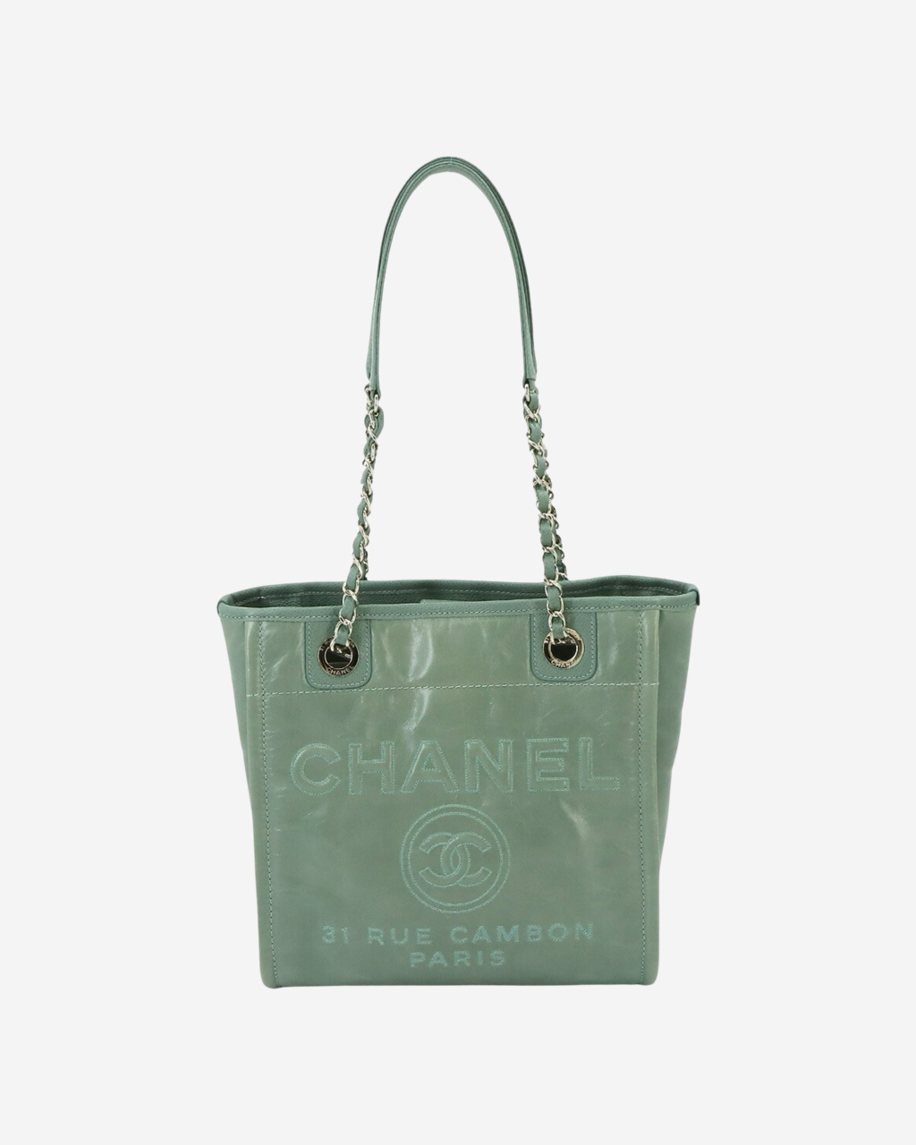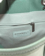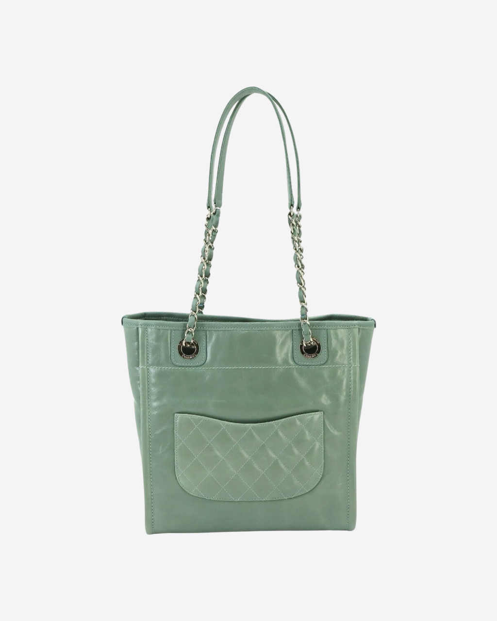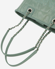 - Descripción: Bolsa tote con logo frontal, doble asa fija, abertura principal abierta, hardware color plateado