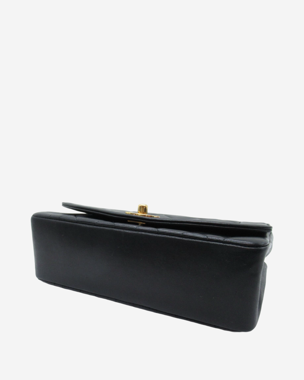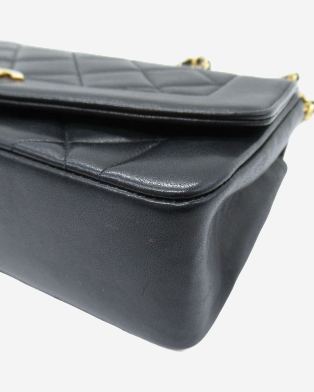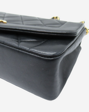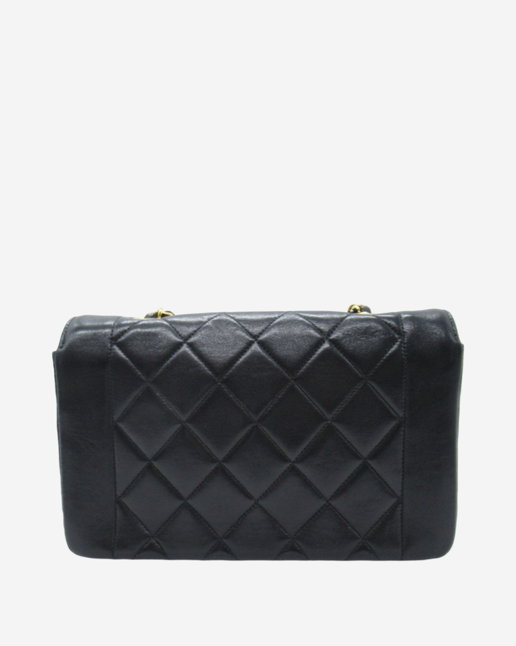 - Descripción: Bolsa de hombro diana en color negro, cierre CC turnlock, interior en color vino, strap oro 24k matelassé, hardware color dorado