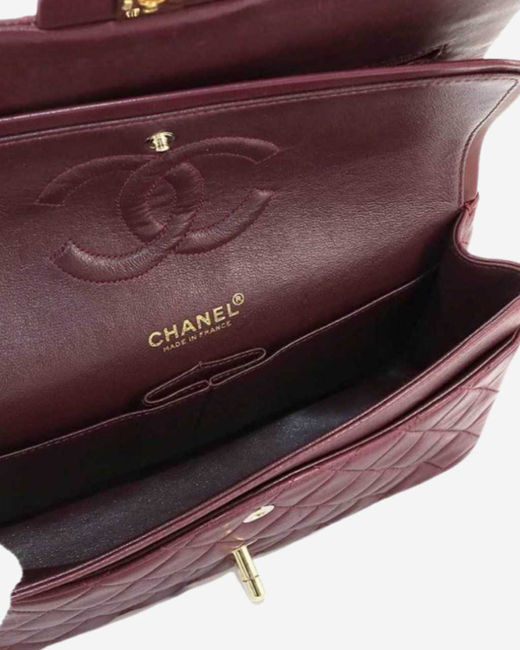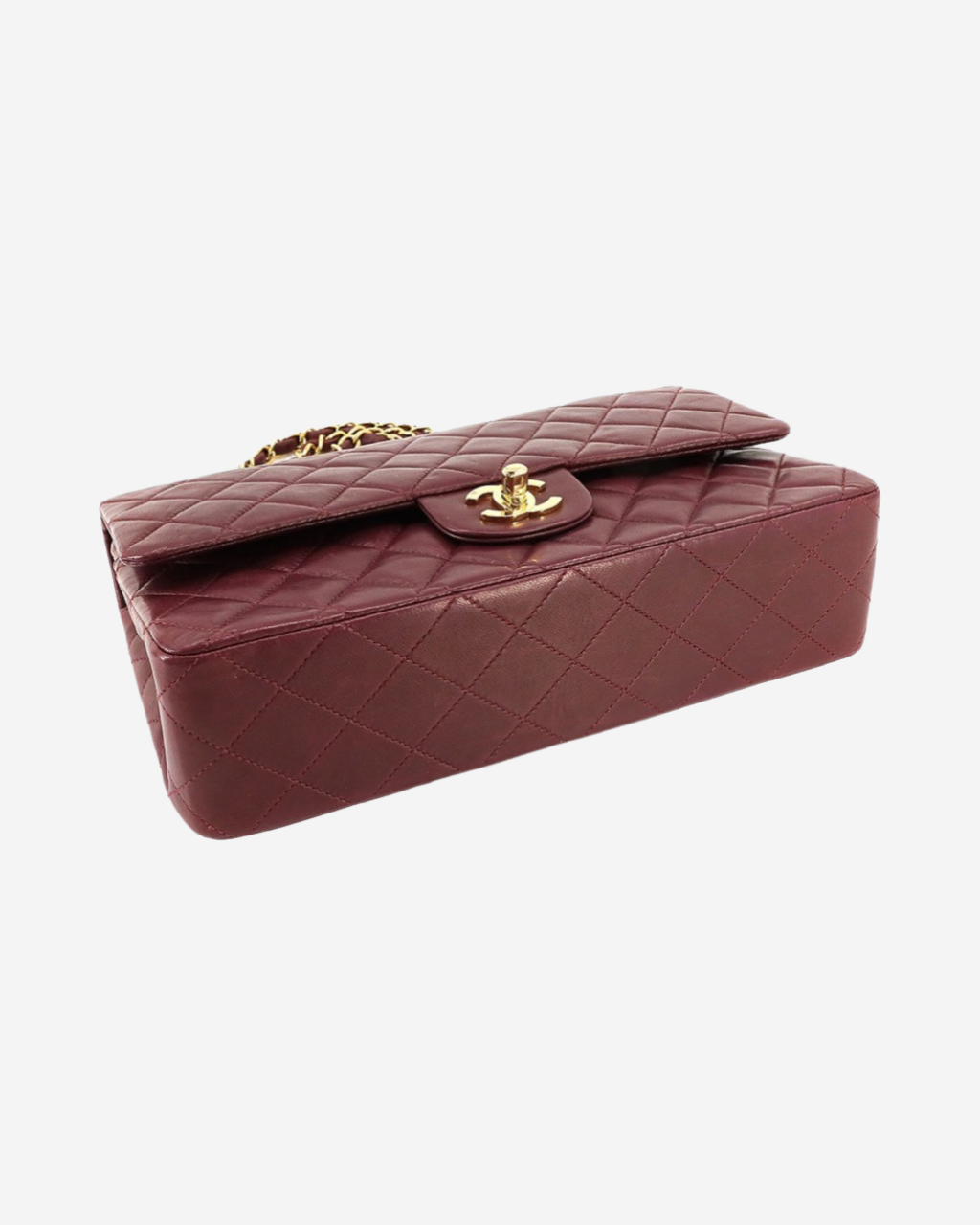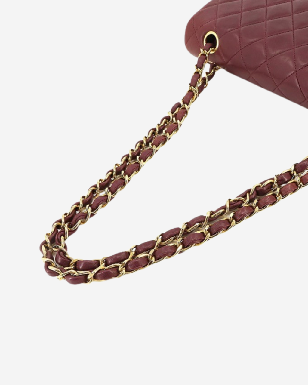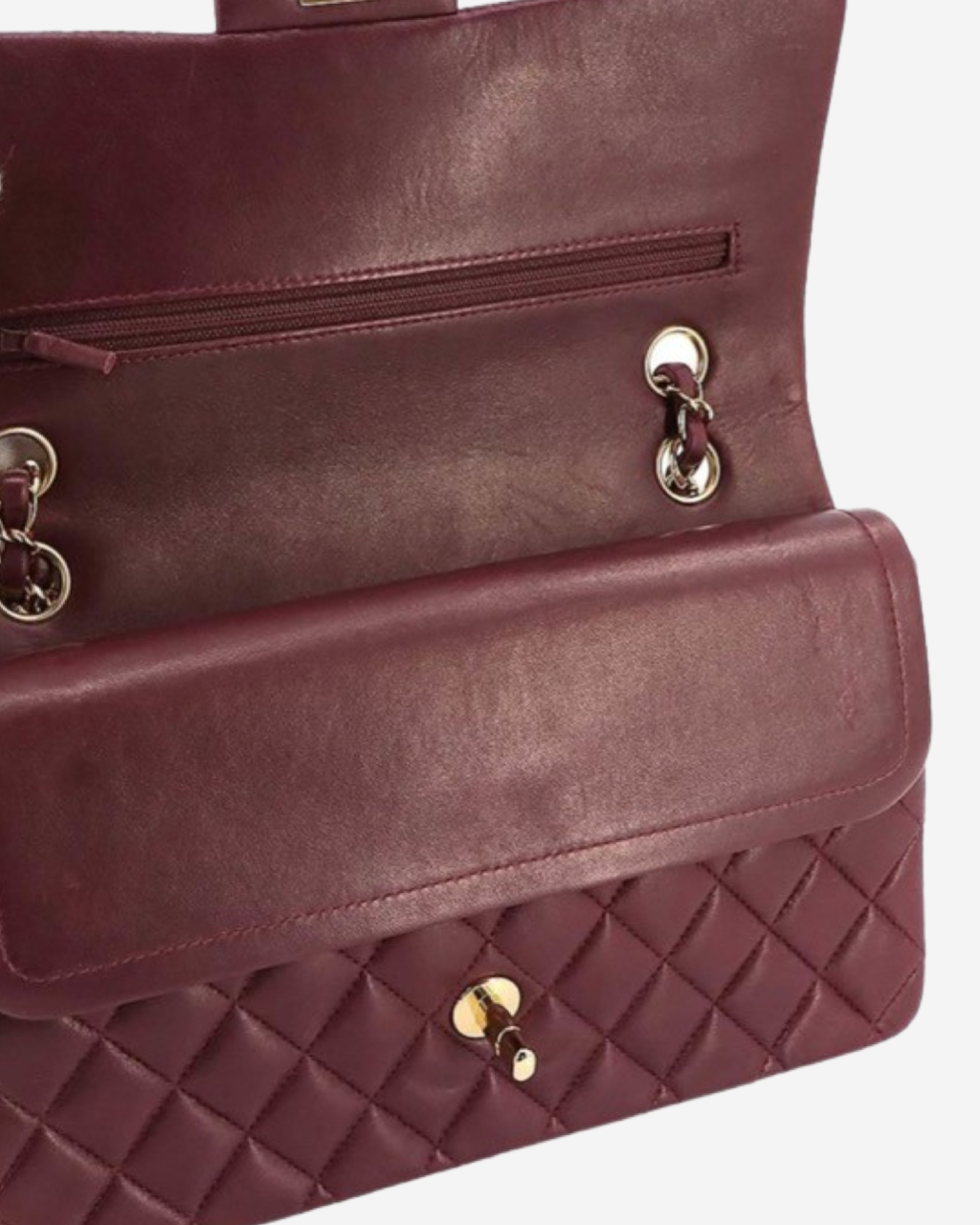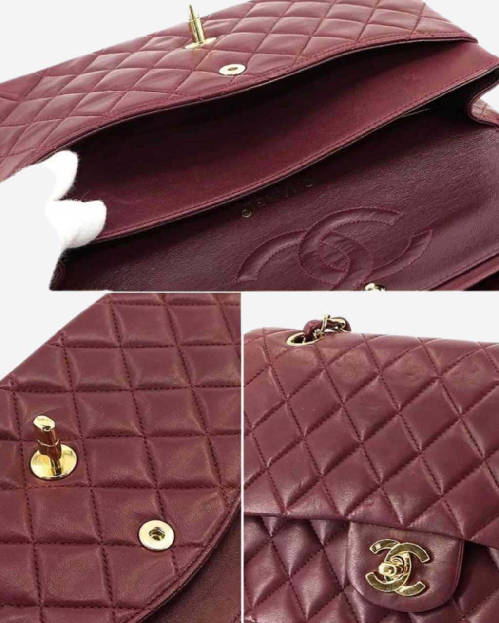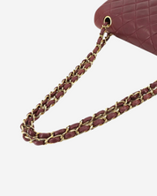 • Descripción: Bolsa Double Flap con capitonado de rombos, correa de cadena y cuero ajustable para el hombro, cierre giratorio característico de CC entrelazadas y hardware en color dorado.