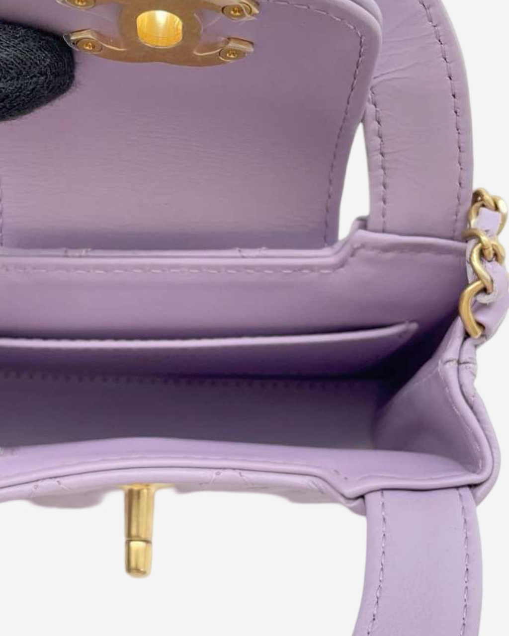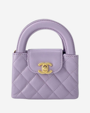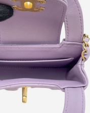 - Descripción: Bolsa de mano mini color morado, broche CC Turnlock frontal, solapa, interior en piel con bolsillo, hardware color dorado