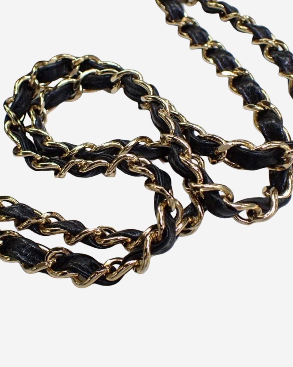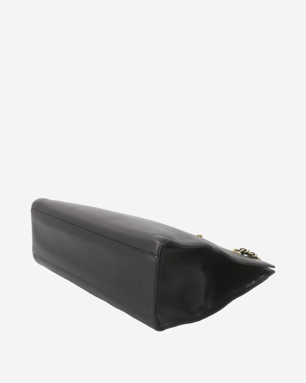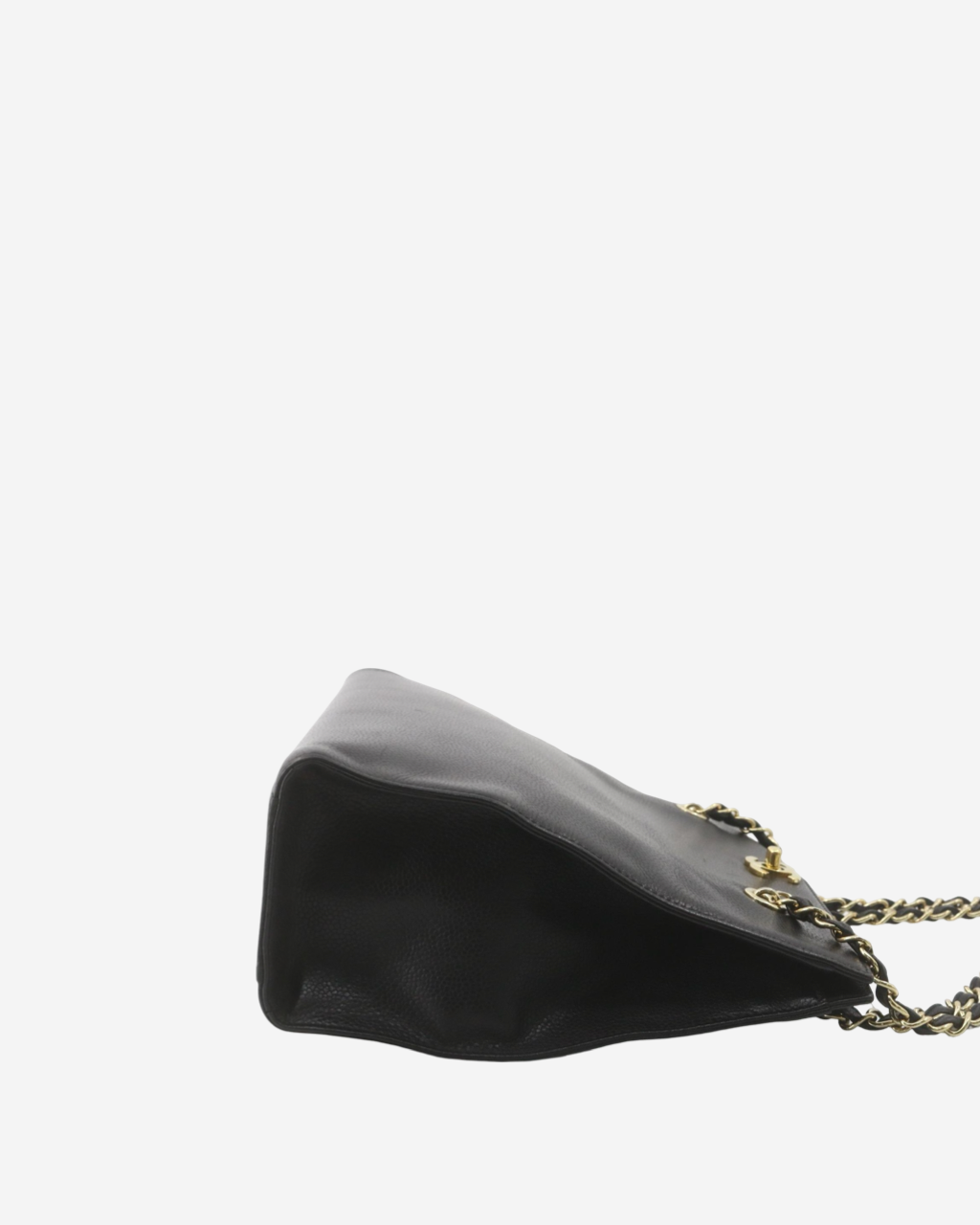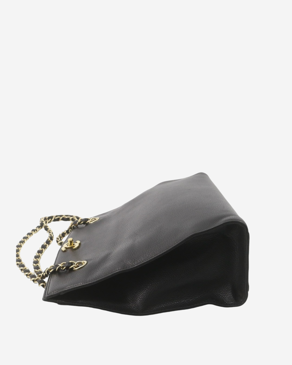 - Descripción: Bolsa de hombro en piel color negro, broche CC turnlock frontal, doble asa al tope matelassé, forro interior en piel color negro, hardware color dorado