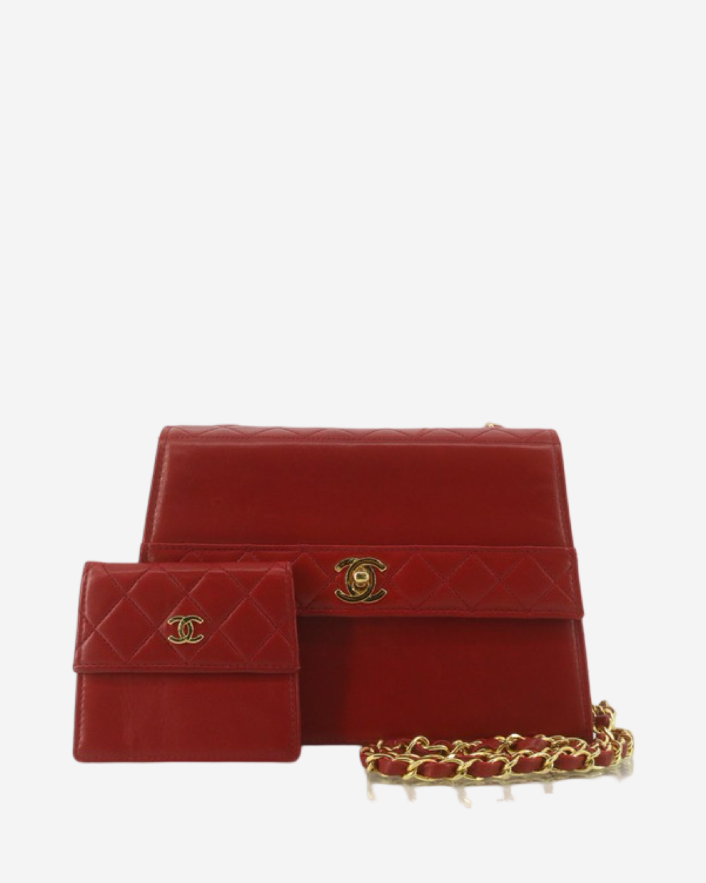 • Descripción: Bolsa de hombro en color rojo, broche CC en baño de oro de 24k, interior en color rojo, hardware color dorado,