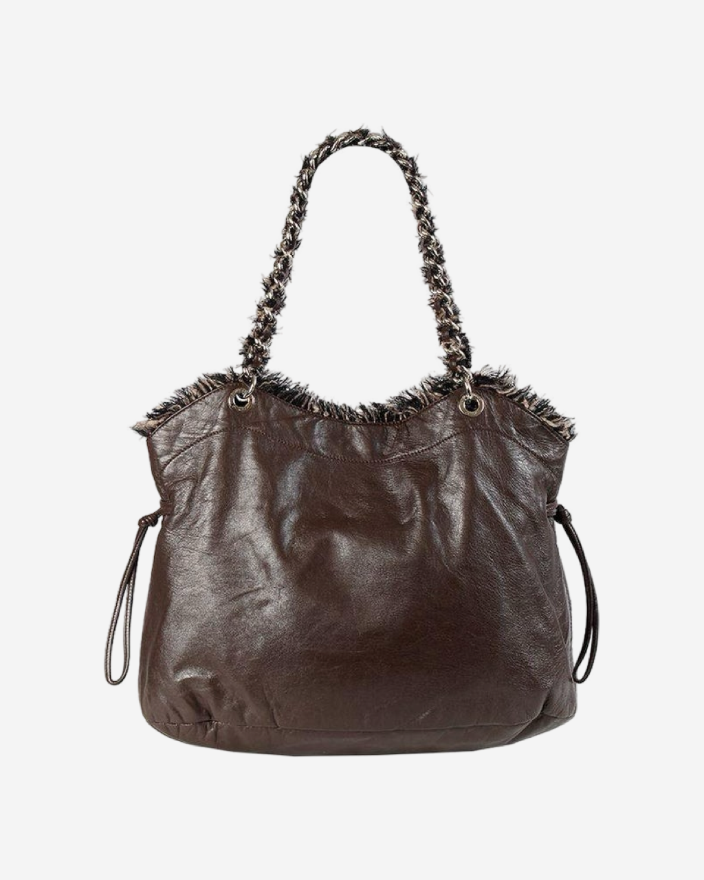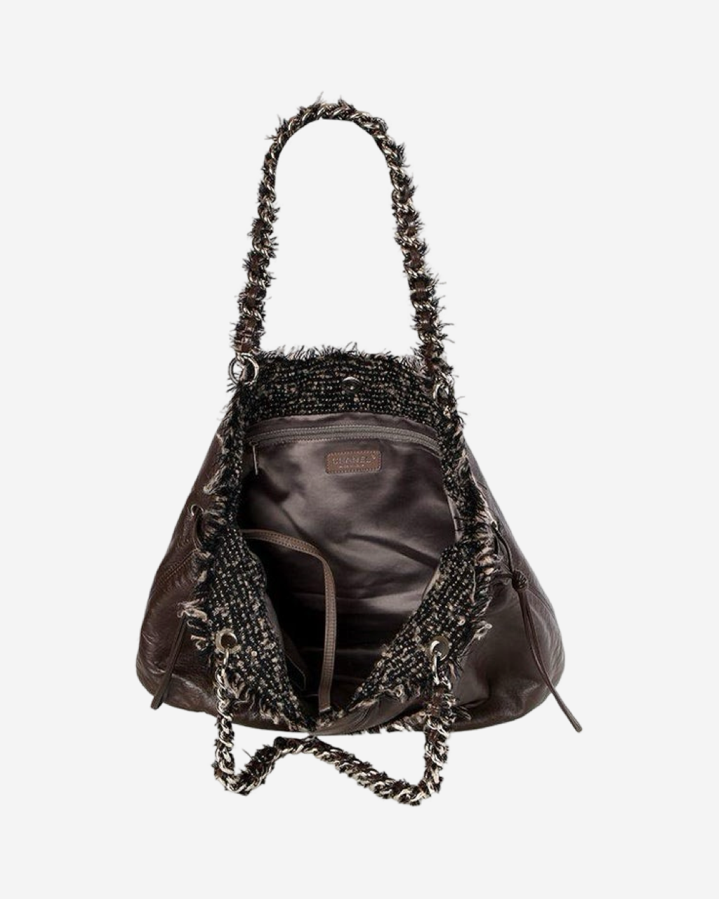 • Descripción: Bolsa de hombro en piel color café, asa movible, logo Chanel CC bordado,, interior en fur con bolsillo, hardware color plateado