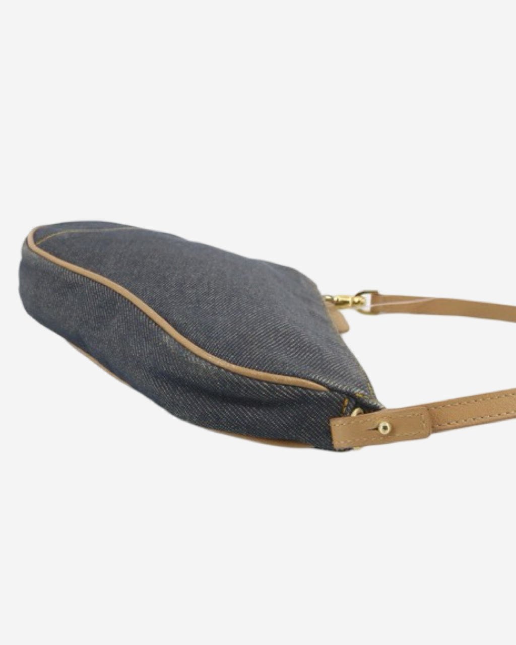 • Descripción: Bolsa de hombro en denim color azul, strap de piel fijo, cierre al tope, hardware color plateado