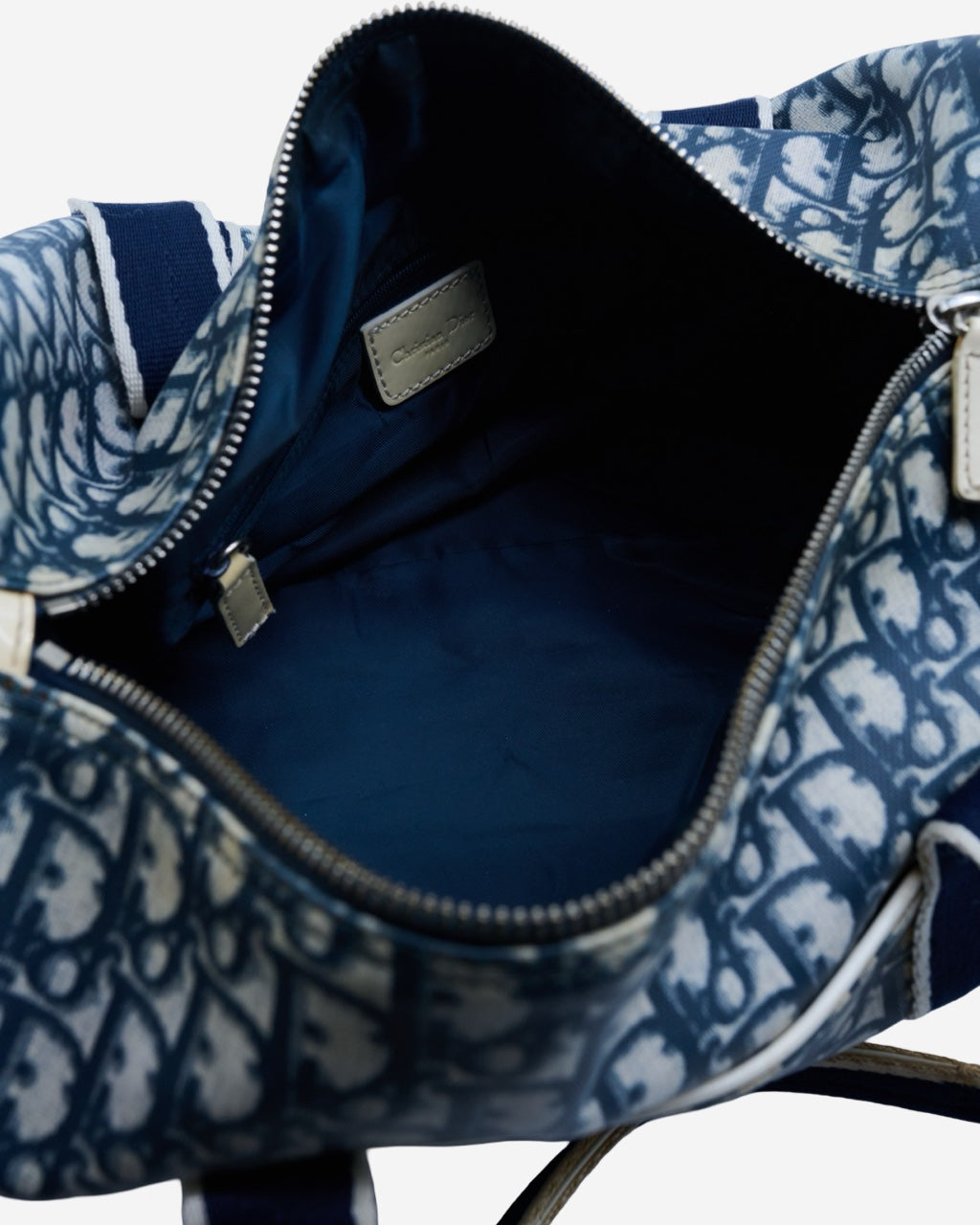 • Descripción: Bolsa de mano Dior en trotter color azul y blanco, doble asa fija textil, abertura princilpal con cierre de doble sentido, forro interior en color azul con bolsillo, hardware en tono plateado