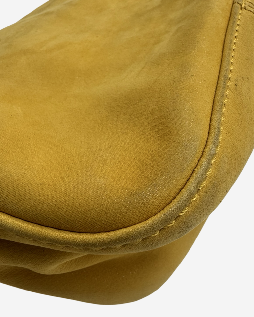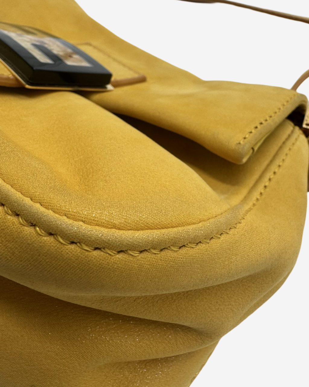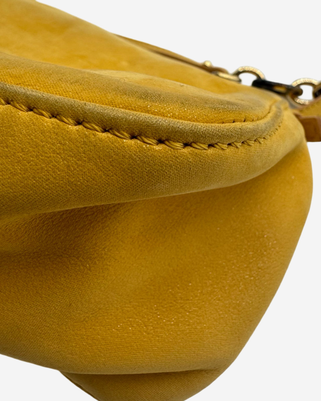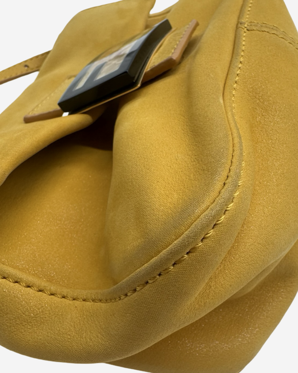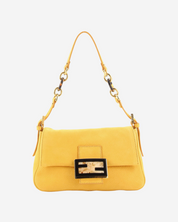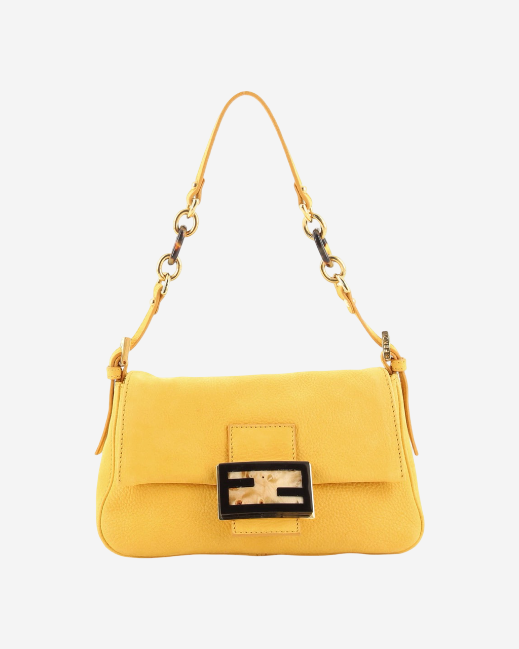 • Descripción: Bolsa Fendi Mini Baguette en piel color amarillo, broche FF frontal característico, asa fija con cadena y piel, abertura con solapa, forro interior textil, hardware color dorado