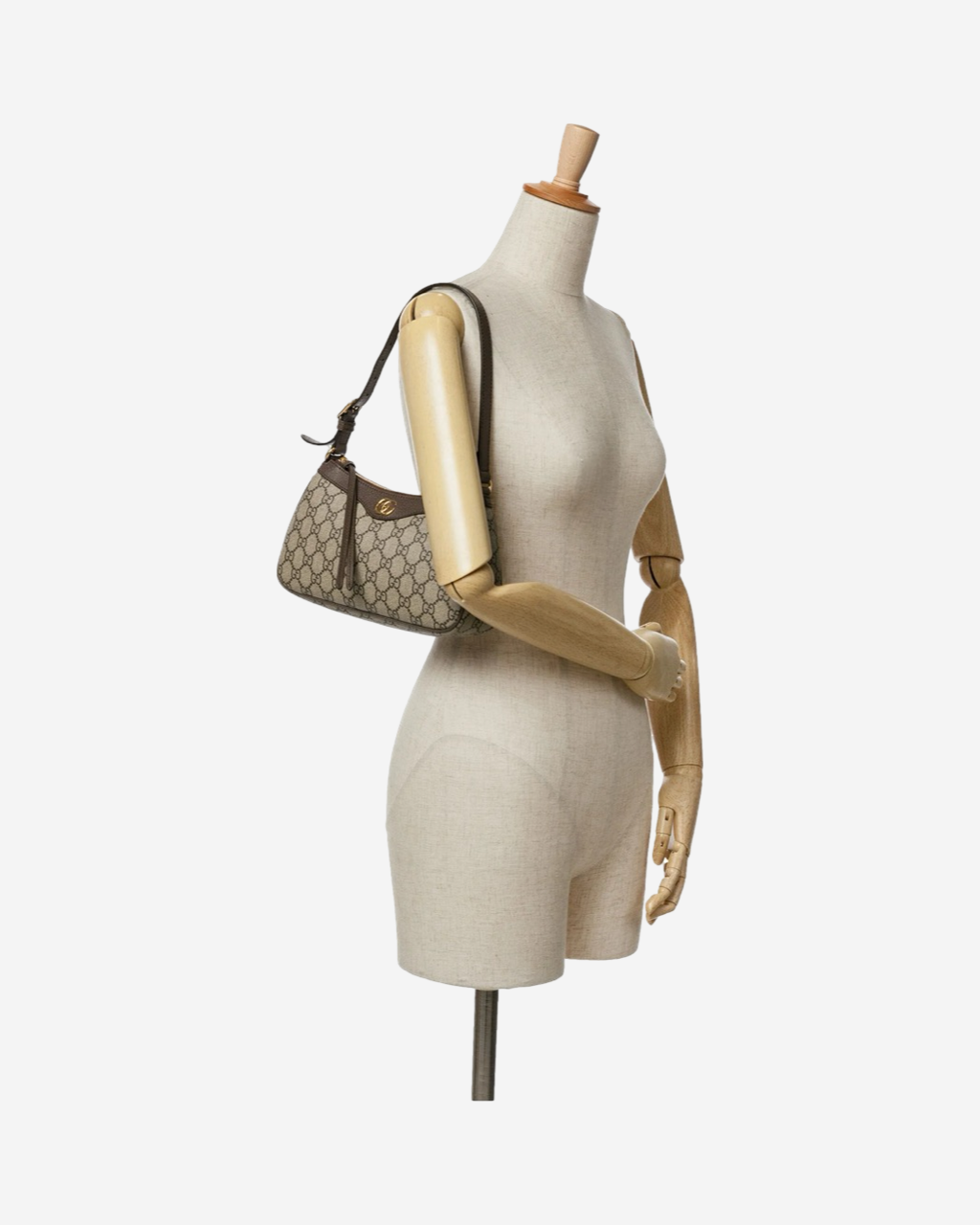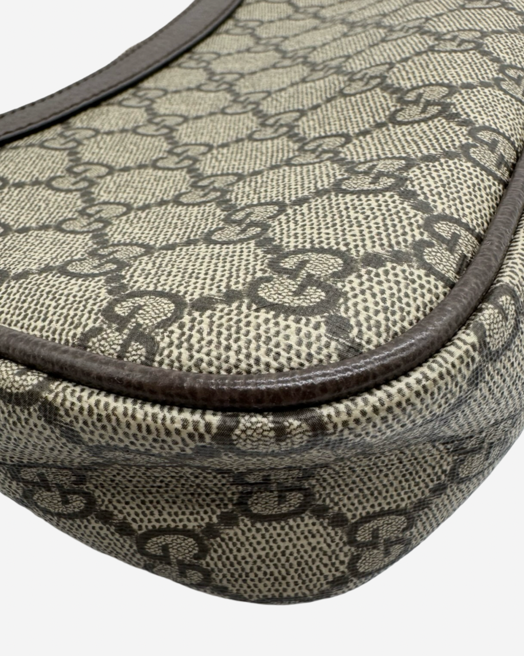 • Descripción: Bolso de hombro en canvas con piel, placa de logo GG característico frontal, cierre al tope, asa fija en piel, hardware color dorado