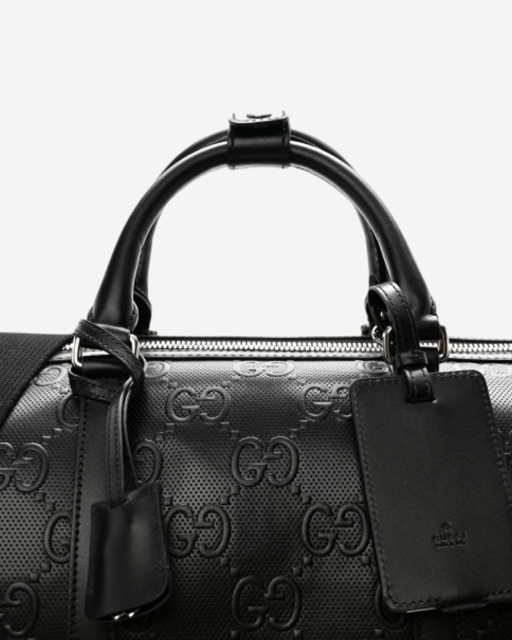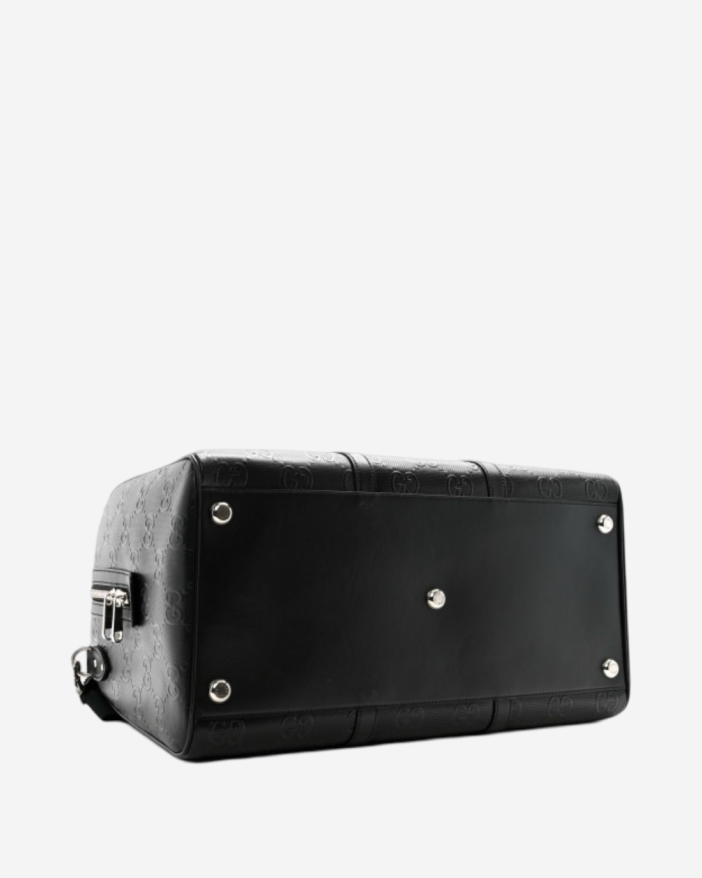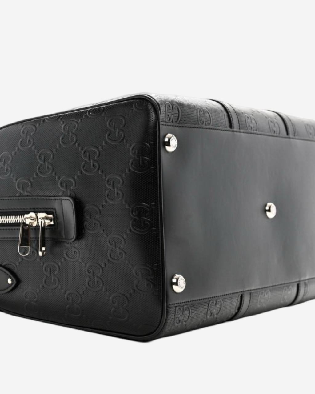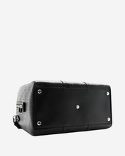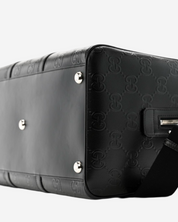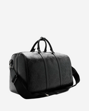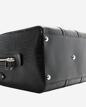 • Descripción: Bolso de mano en piel color negro, doble asa fija, cierre al tope, forro interior textil, hardware en tono plateado