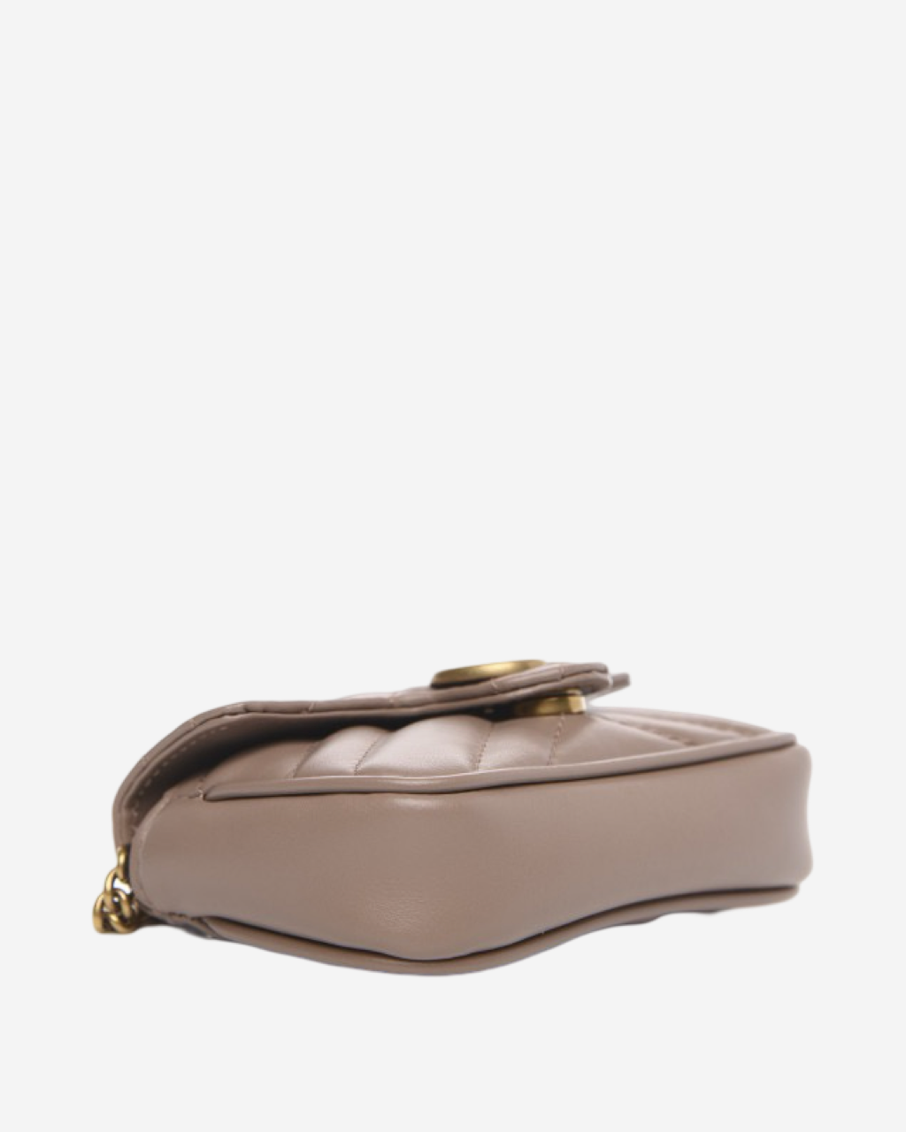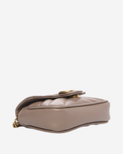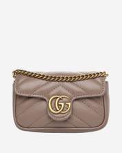 • Descripción: Bolsa cruzada en color negro, placa GG frontal, abertura con solapa, interior en color beige, strap fijo en piel con cadenas, hardware color dorado