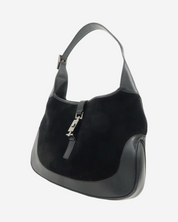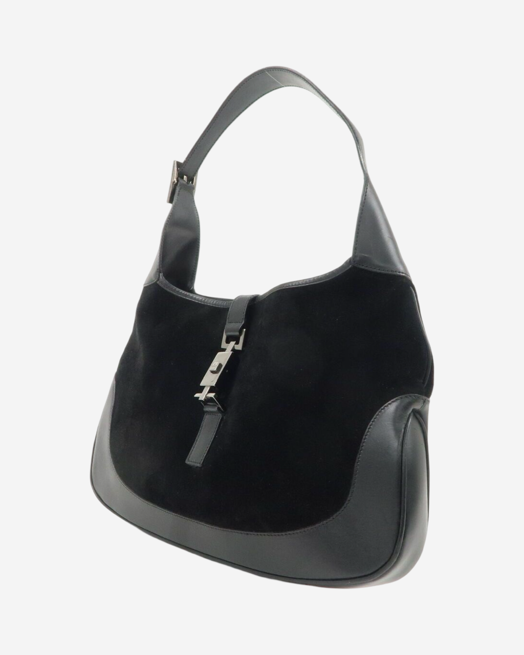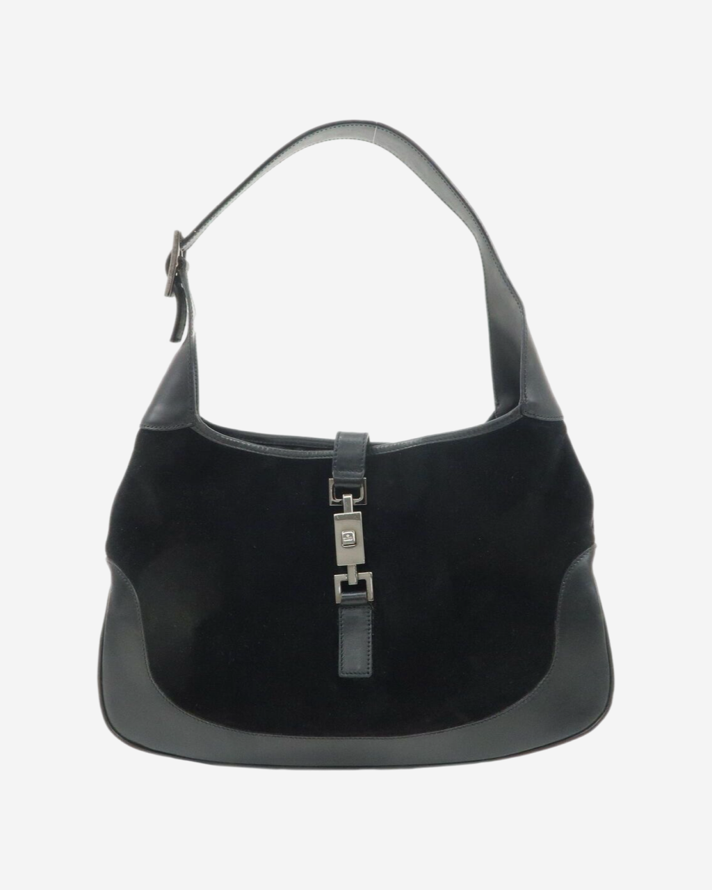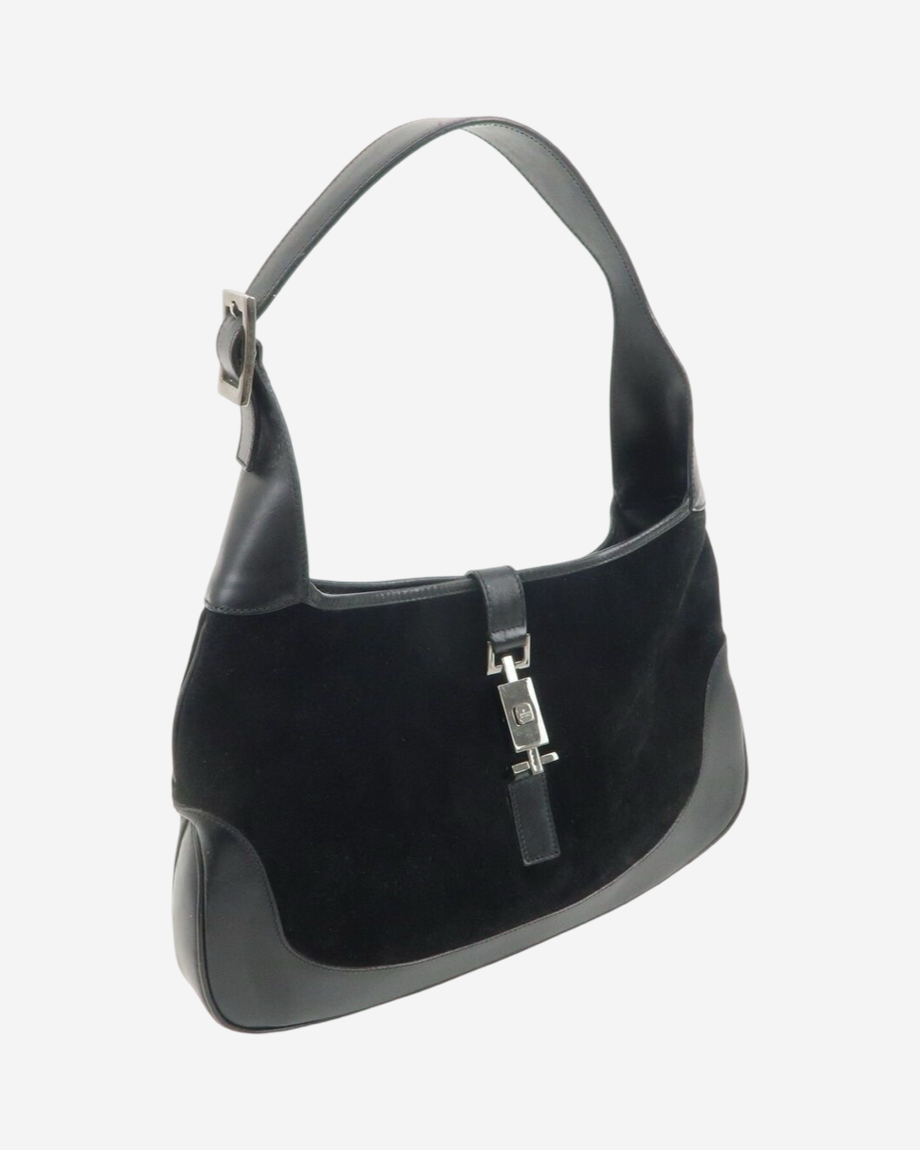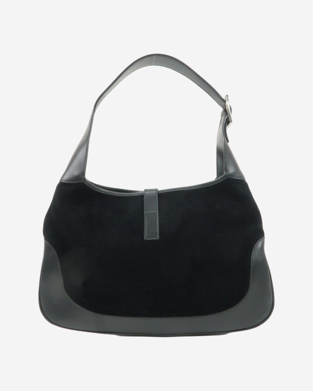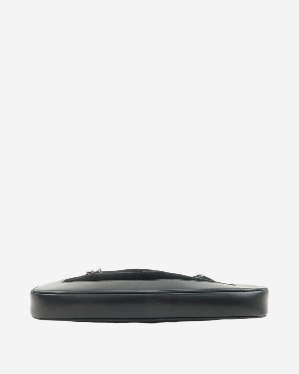 • Descripción: Bolsa de hombro en gamuza color negro con detalles en piel, asa fija, abertura con broche magnético, hardware color plateado