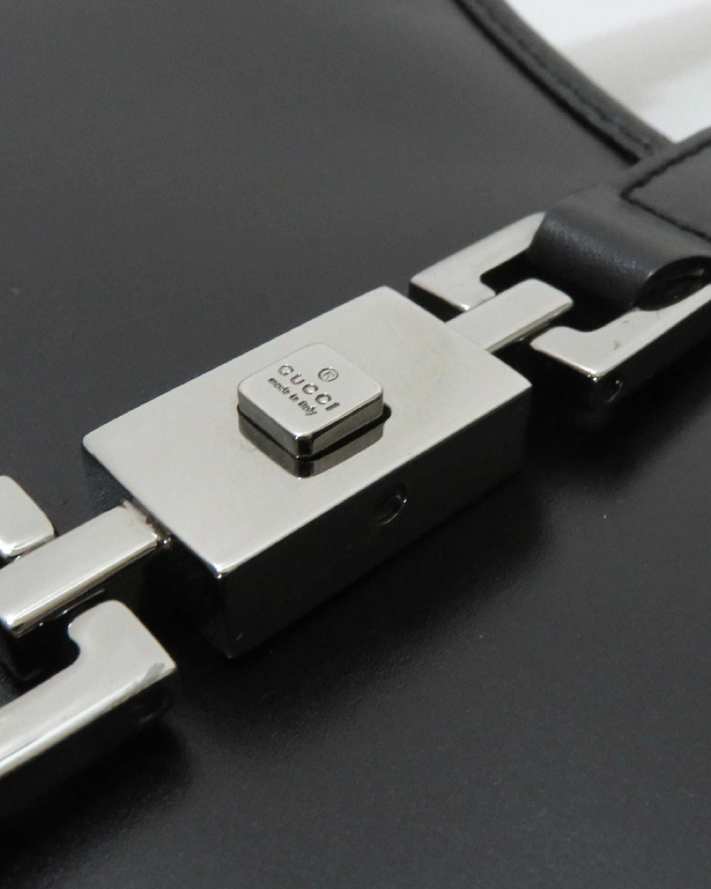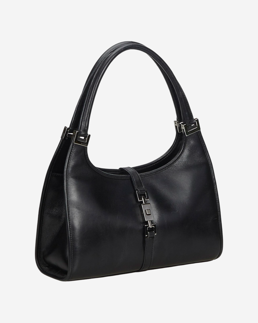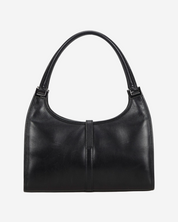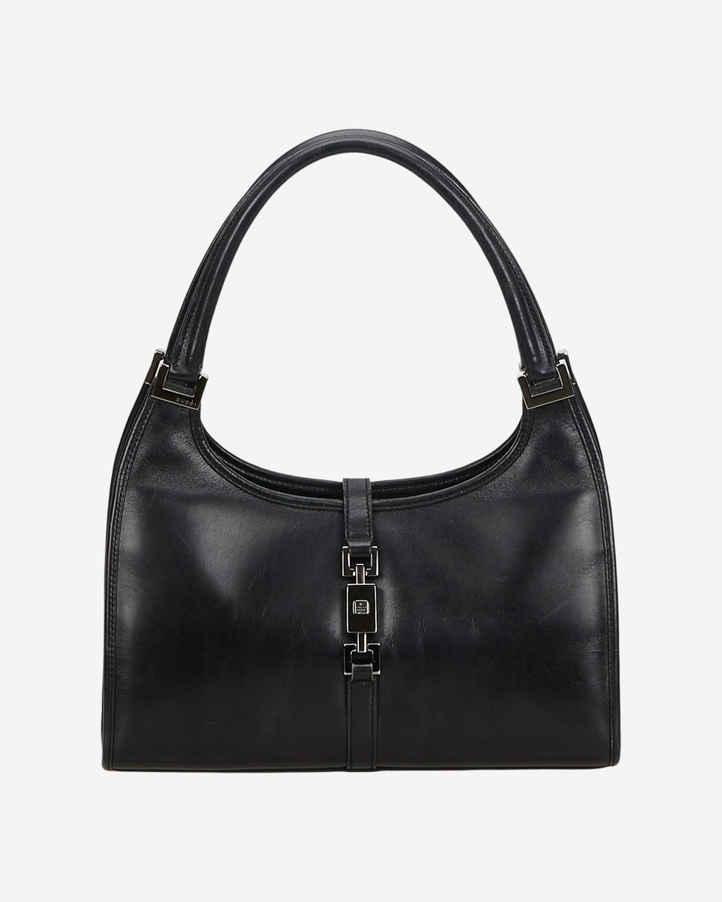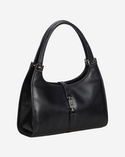 • Descripción: Bolso de hombro en piel color negro, doble asa fija, broche frontal, hardware color plateado