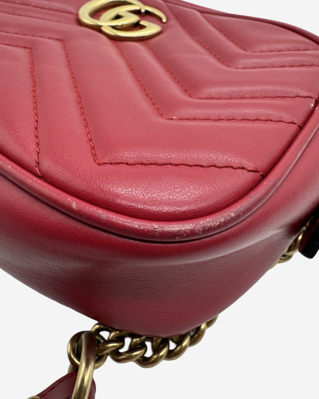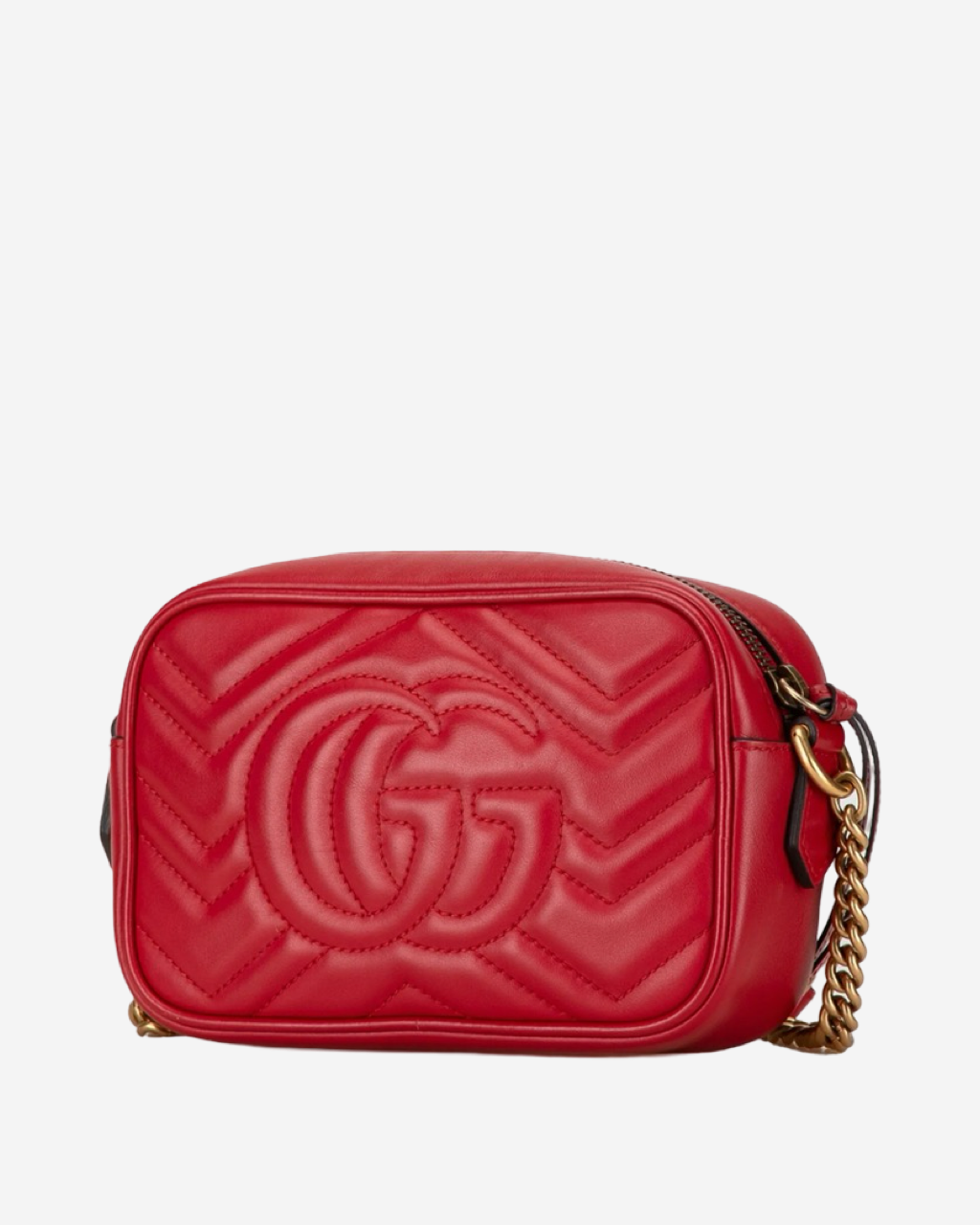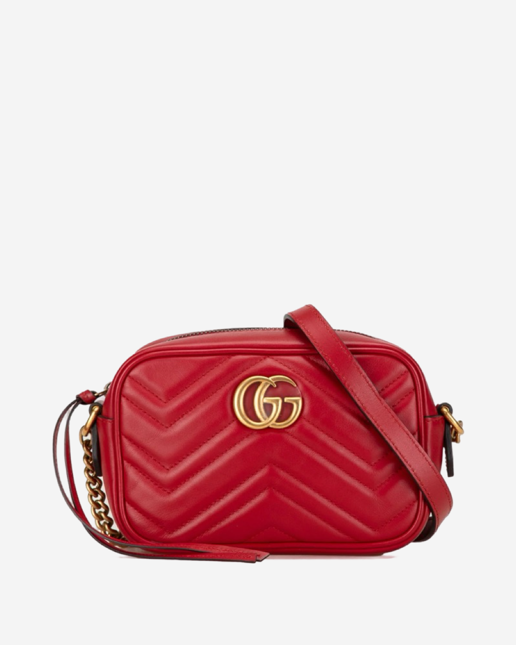 - Descripción: Bolsa crossbody de piel con logo GG característico frontal, cierre al tope, interior en color beige con bolsillo, hardware color dorado