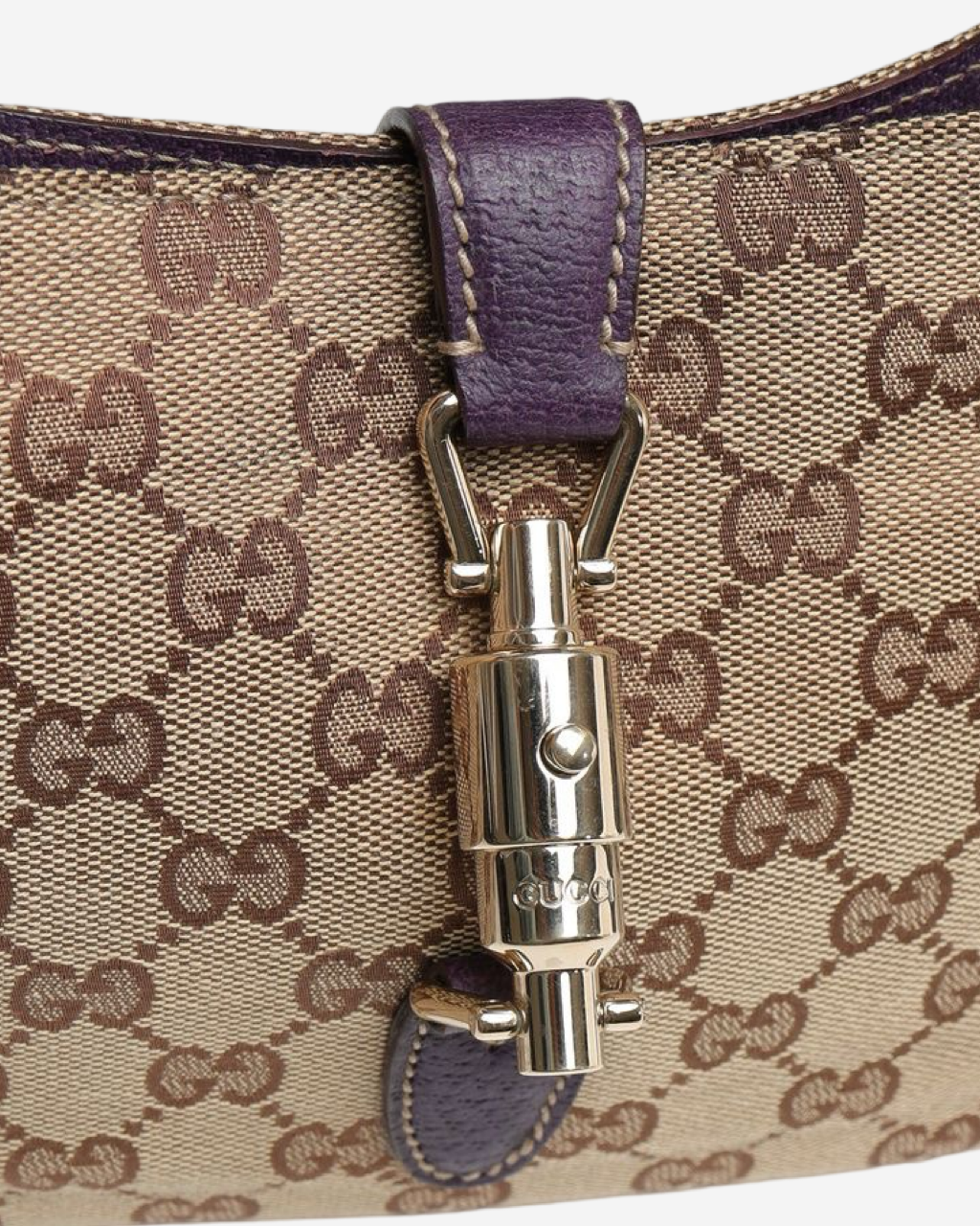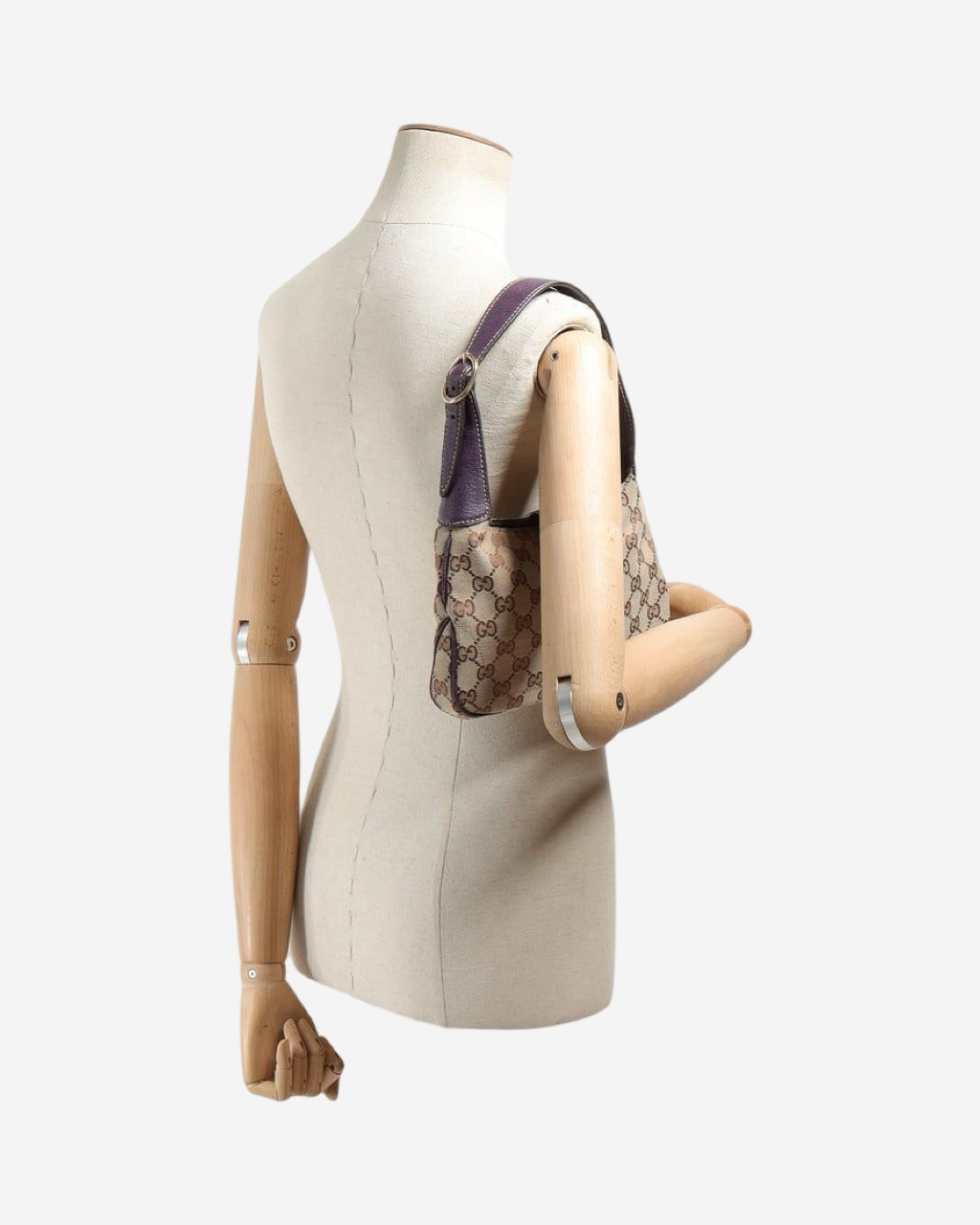 - Descripción: Bolsa de hombro en canvas color beige, strap fijo, abertura con broche, forro interior textil