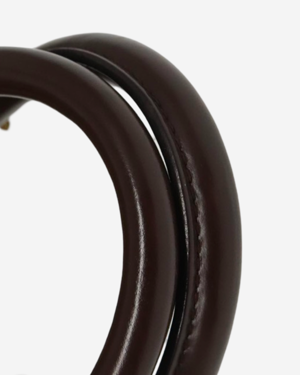 Descripción: Bolsa de mano en color café, doble asa fija , cierre al tope, forro interior textil, strap largo, hardware color dorado