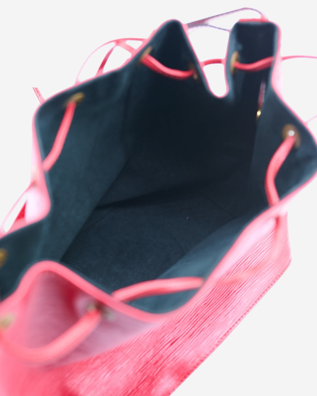 - Descripción: Bolsa de hombro Louis Vuitton en piel epi color rojo, asa mediana ajustable, abertura principal con cordón, forro interior textil en gamuza color negro, hardware en tono dorado