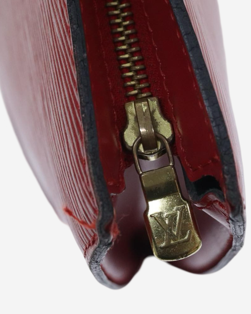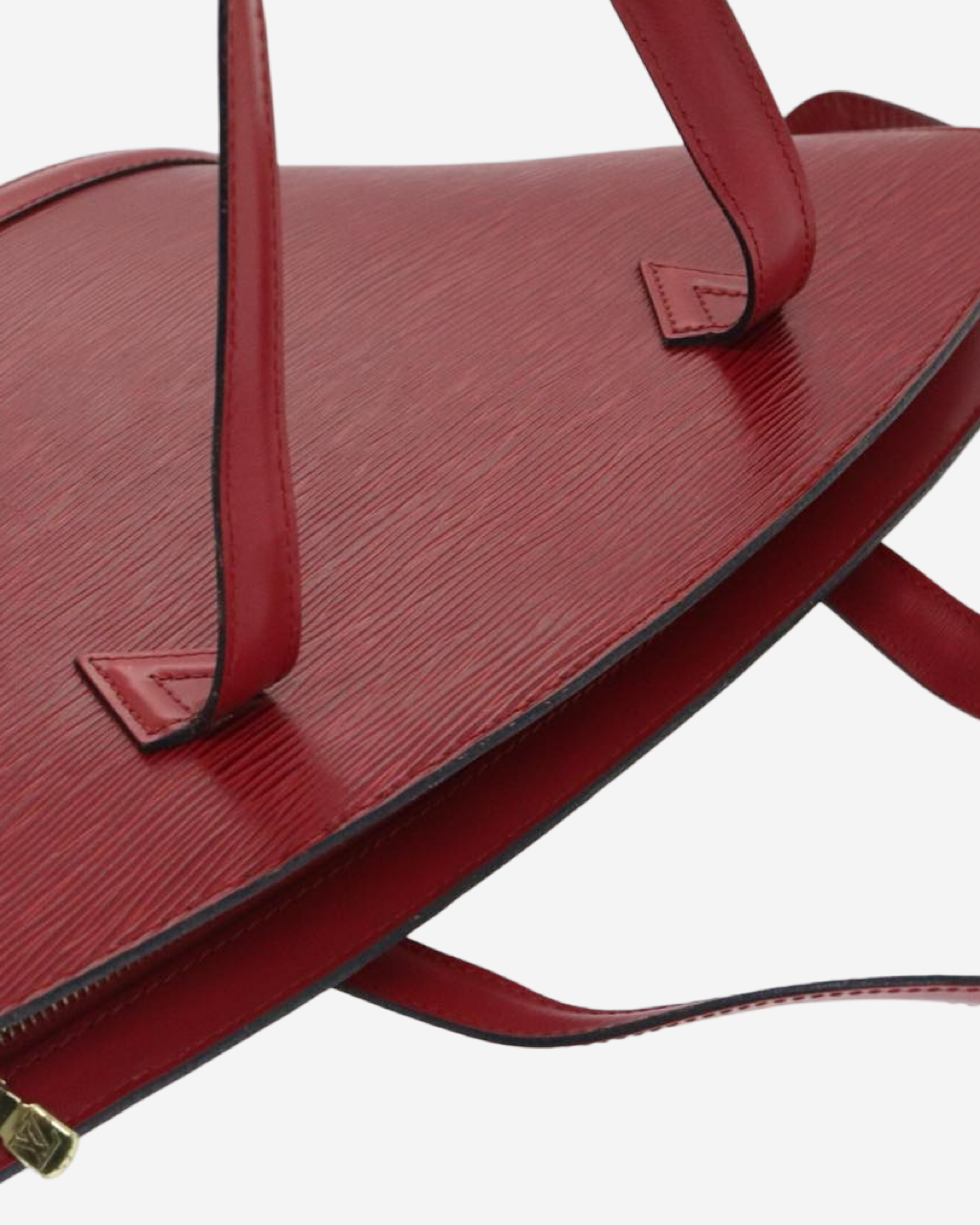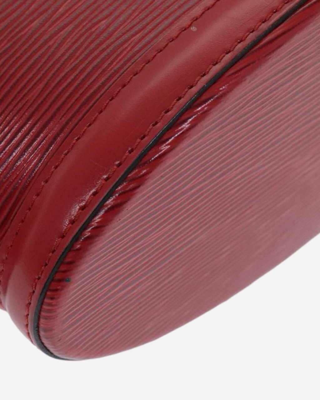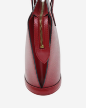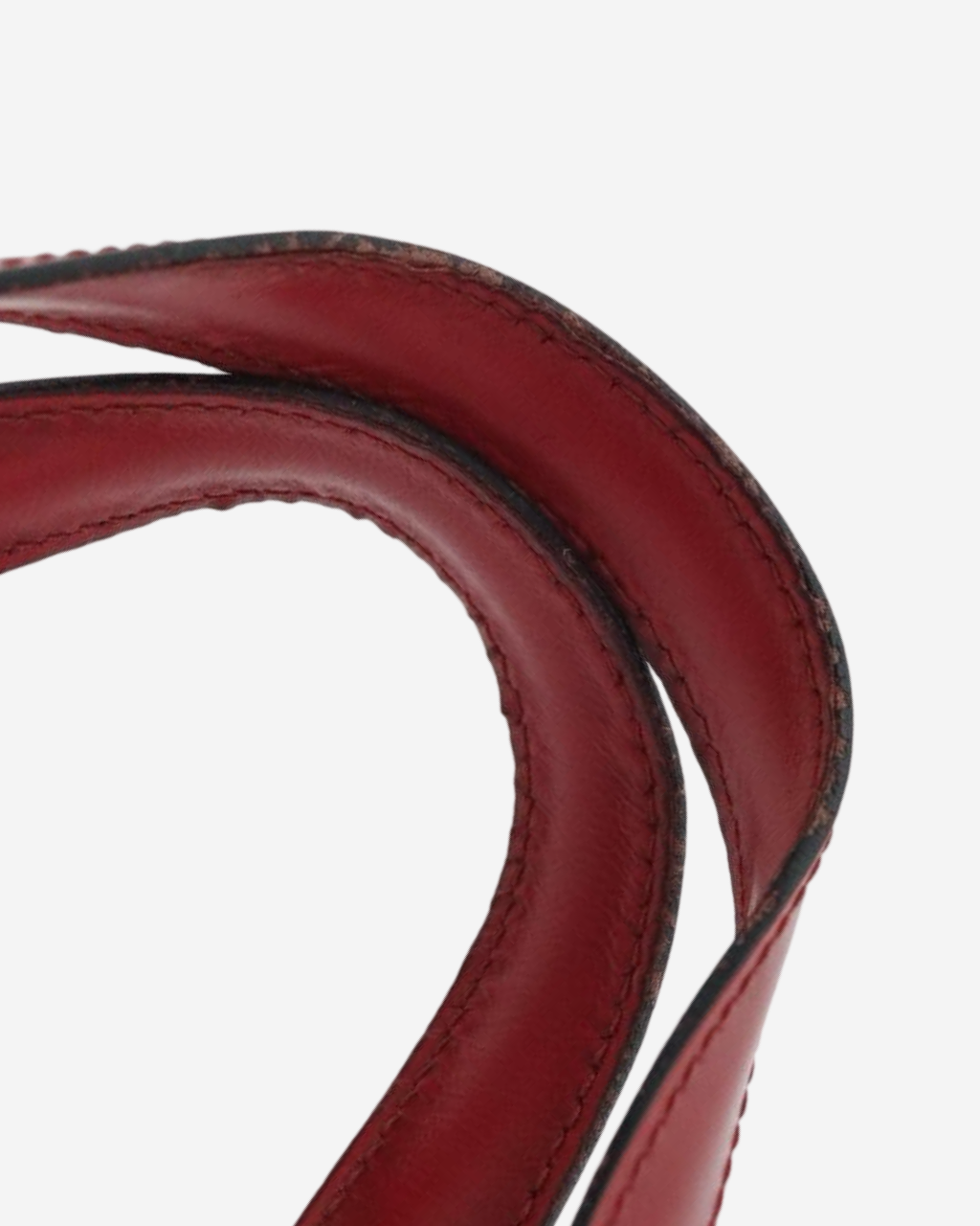 - Descripción: Bolso de hombro en peil cepi color rojo, doble asa fija, cierre al tope, forro interior en gamuza color negro
