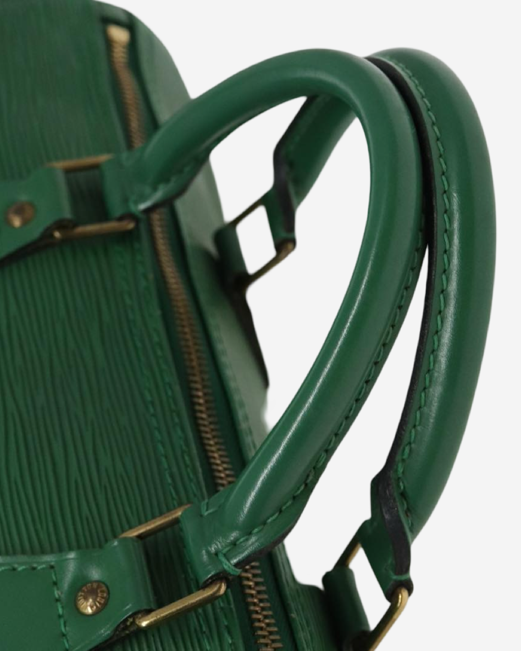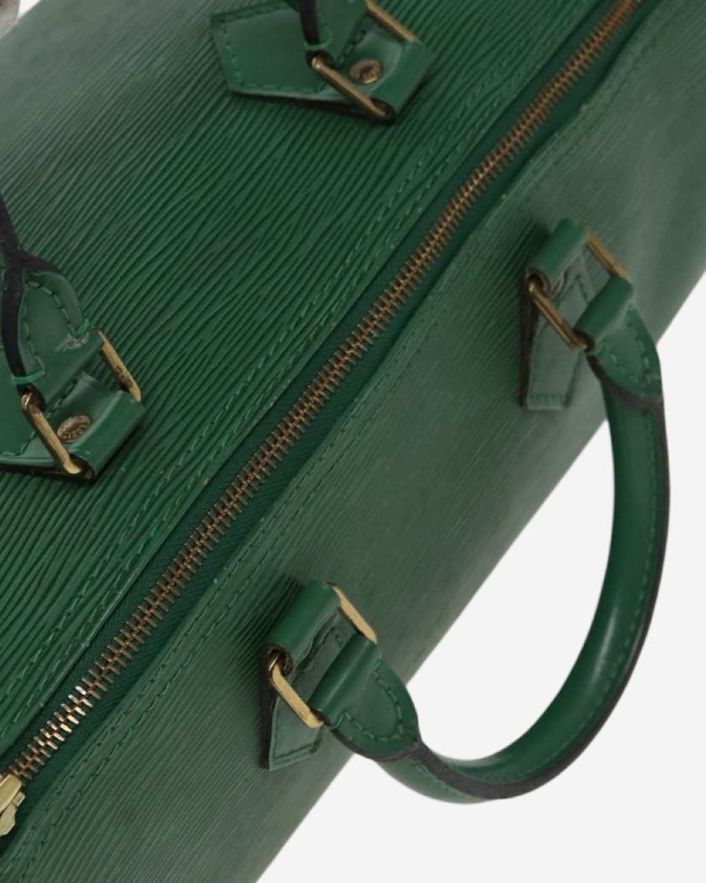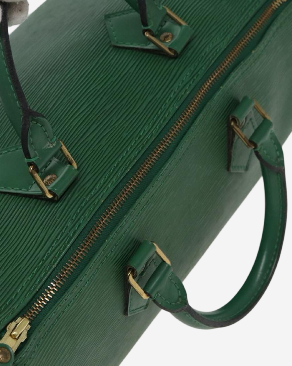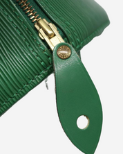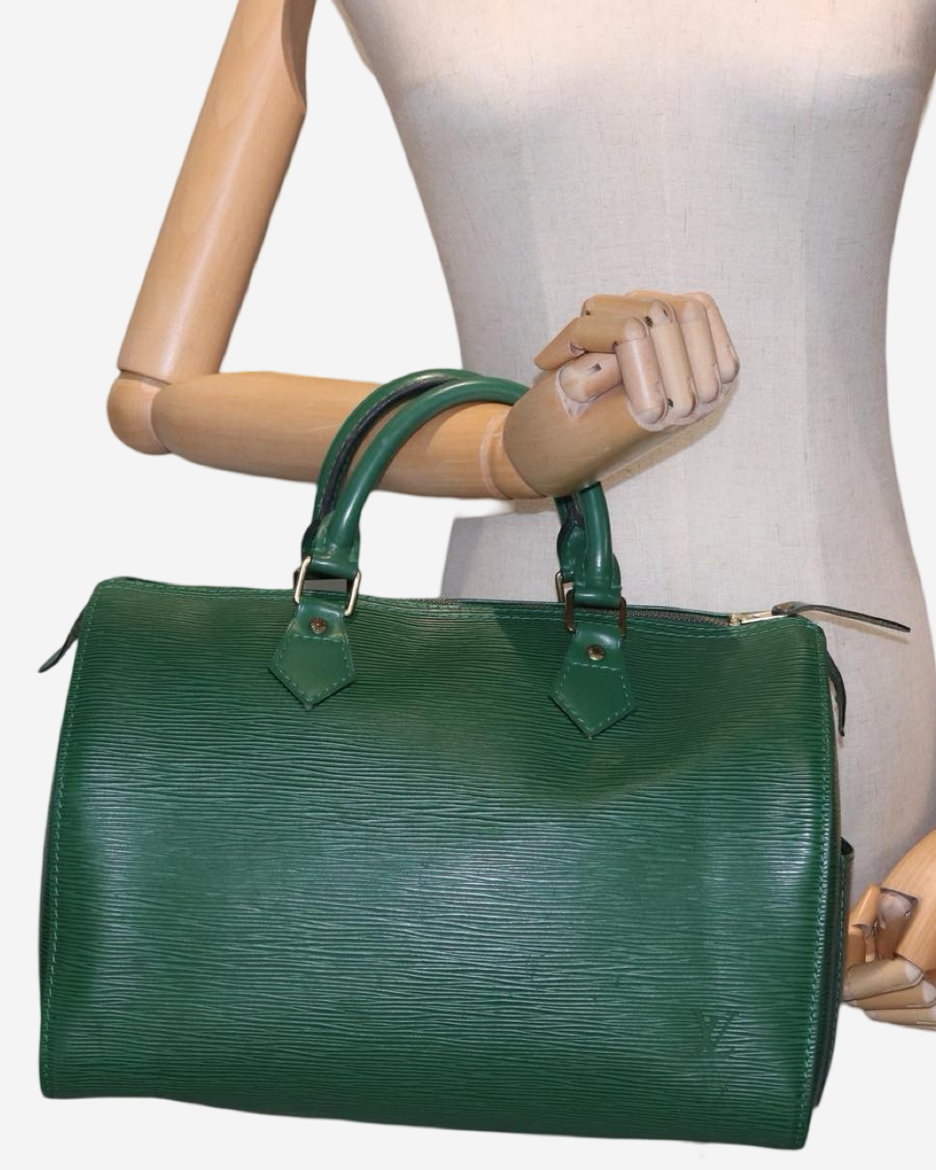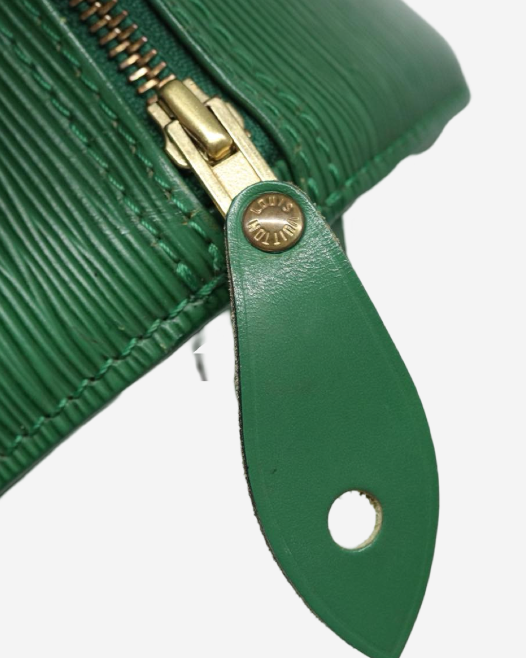 • Descripción: Bolsa de mano con dos asas, cierre con cremallera en el tope y compartimento principal, forro interior en tela, hardware color dorado