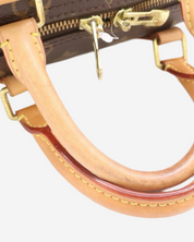 • Descripción: Bolsa de mano con dos asas, cierre con cremallera en el tope y compartimento principal, forro interior en tela, hardware color dorado