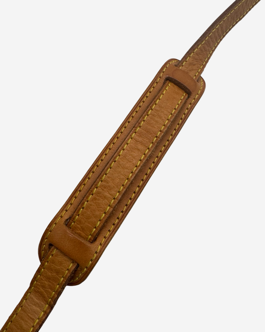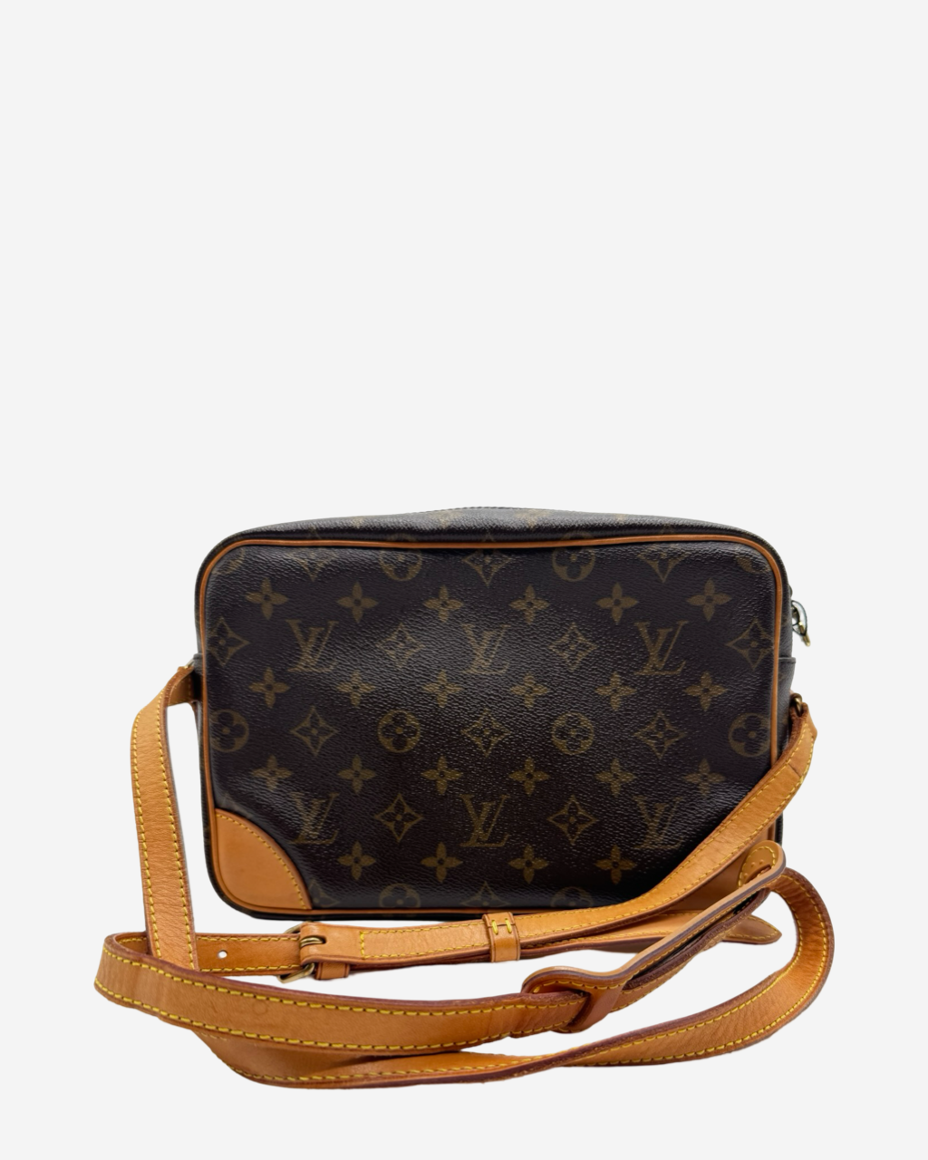 - Descripción: Bolso cruzada en canvas monogram, cierre al tope, strap largo en piel, hardware color dorado