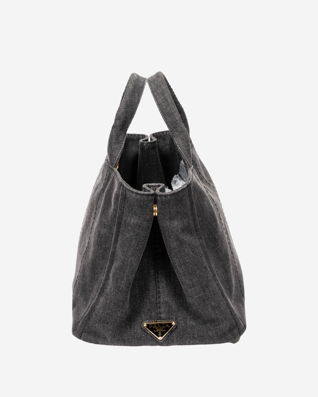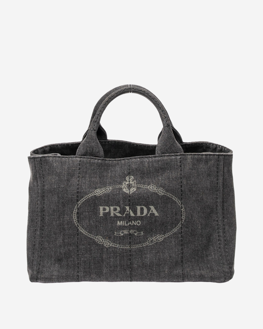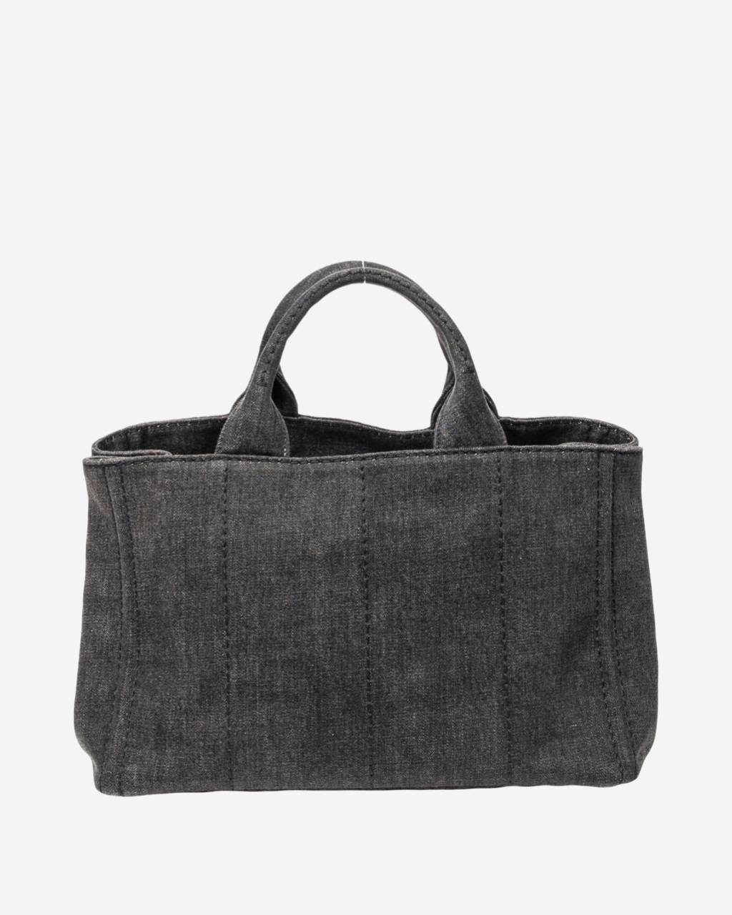 - Descripción: Bolsa de mano con doble asa fija, print logo frontal característico, compartimento principal abierto, hardware color dorado