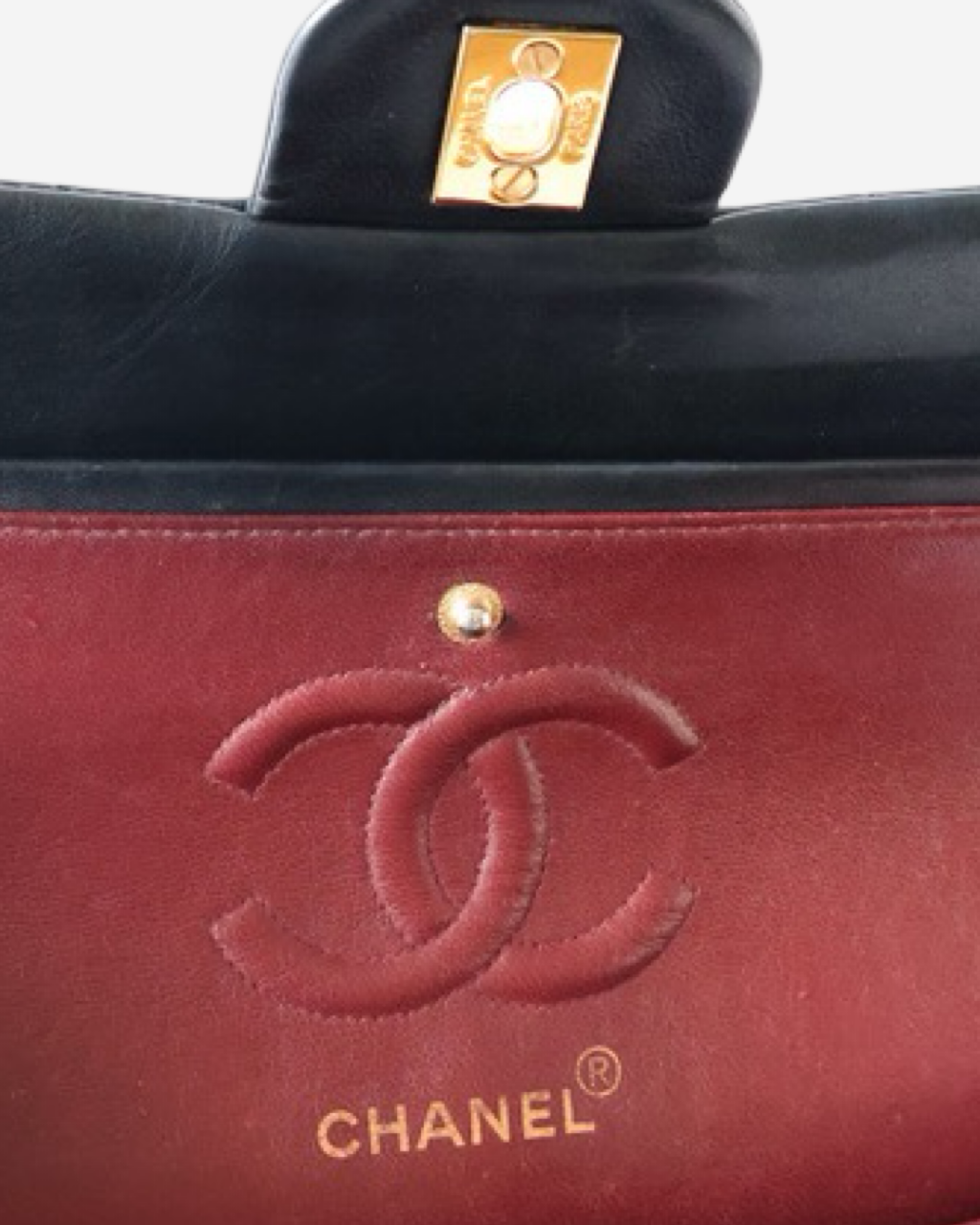 • Descripción: Bolsa de hombro en color negro, broche CC en baño de oro de 24k, interior en color vino, hardware color dorado