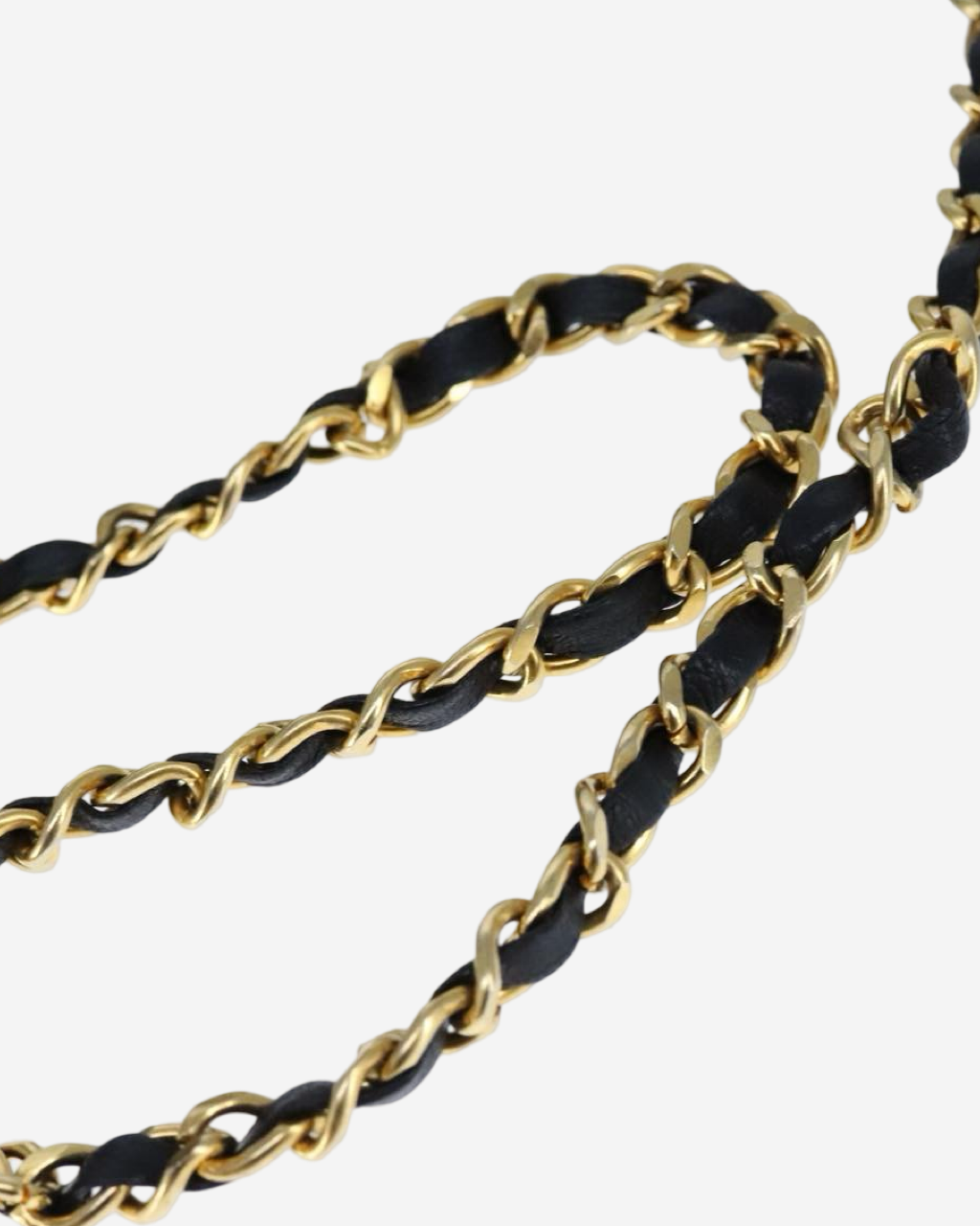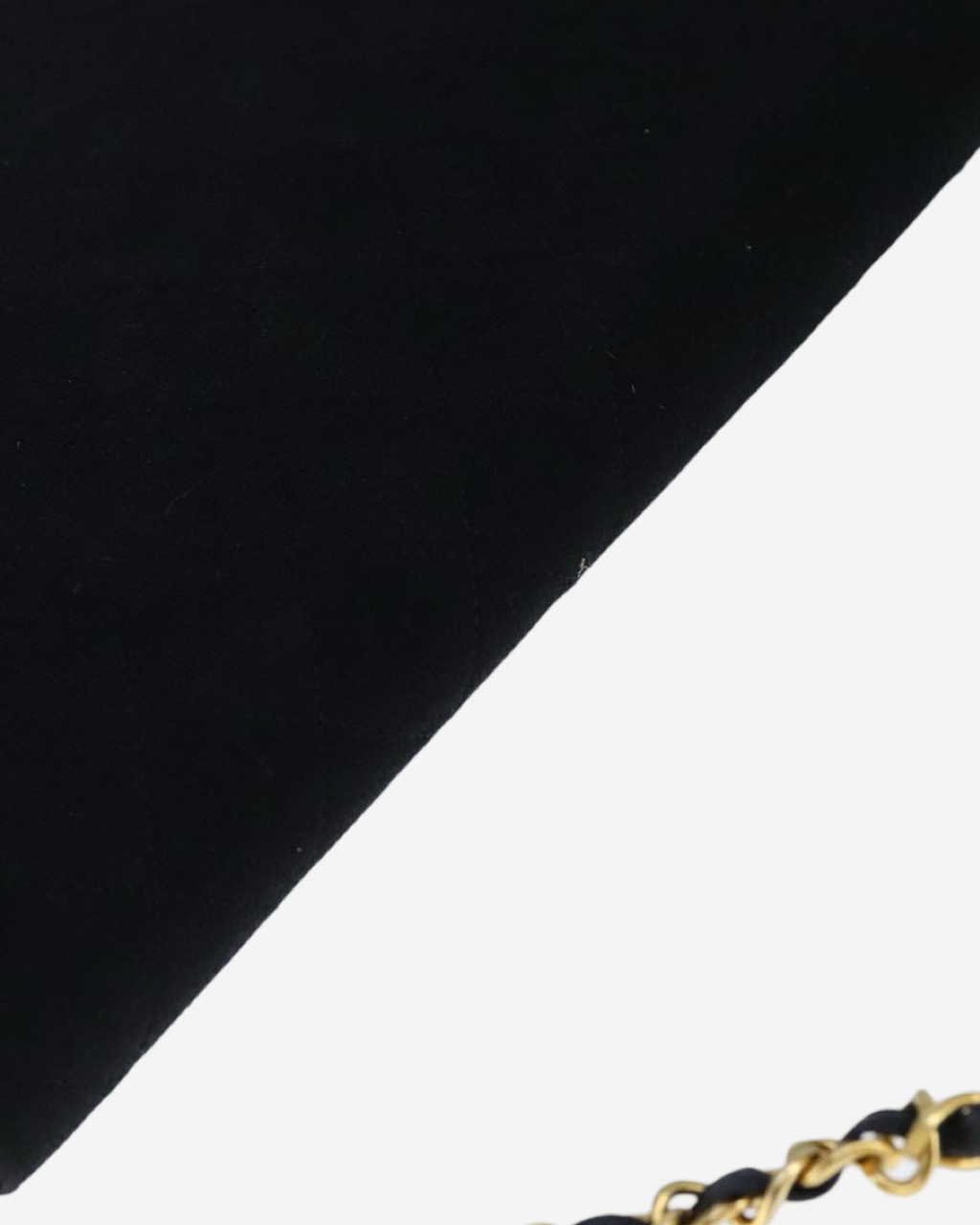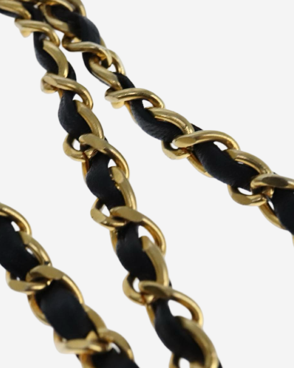 • Descripción: Bolsa de hombro en algodón negro, broche CC en baño de oro de 24k, interior en color vino, hardware color dorado