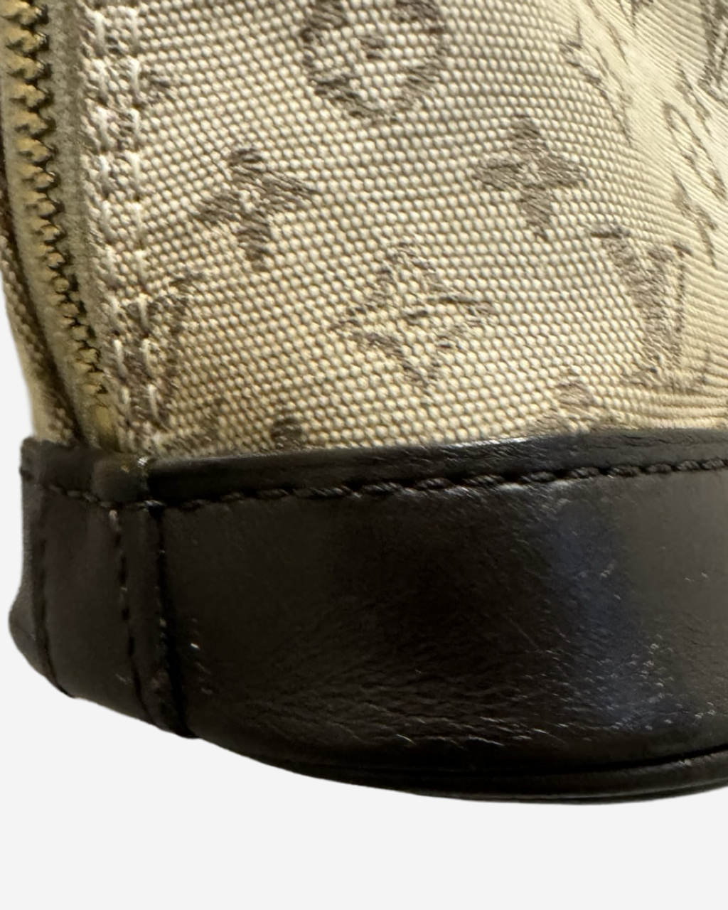 • Descripción: Bolso de mano en canvas color beige con terminados en piel doble asa fija, cierre al tope, hardware en tono dorado