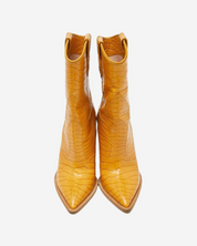 • Descripción: Botas cowboy en piel efecto croc color amarillo, puntera puntiaguda, tacón ancho en madera