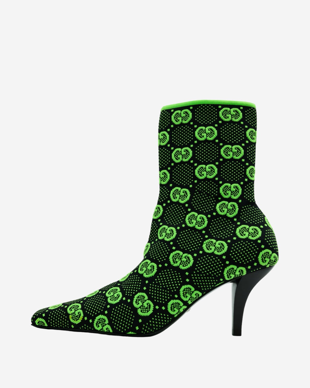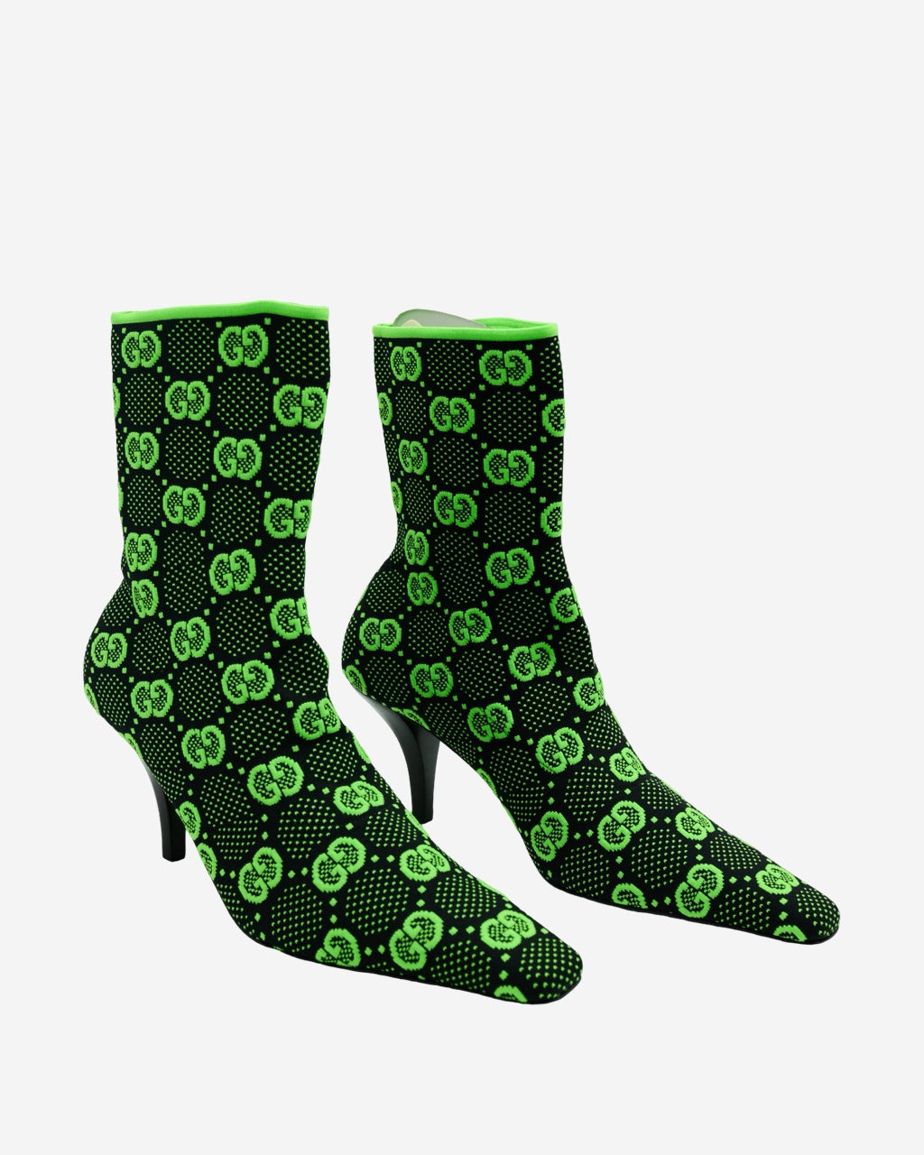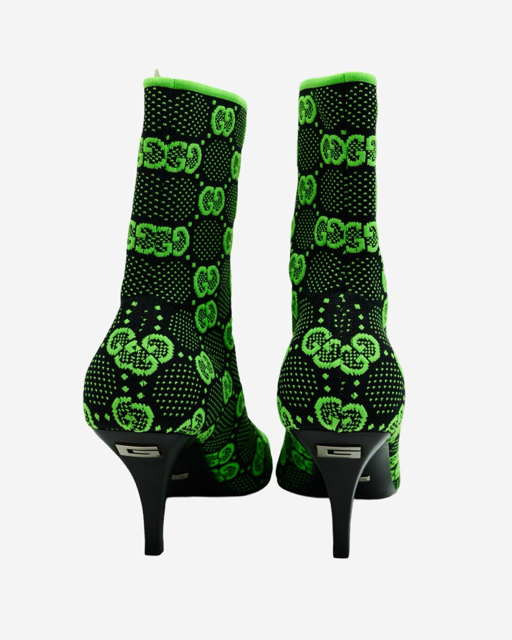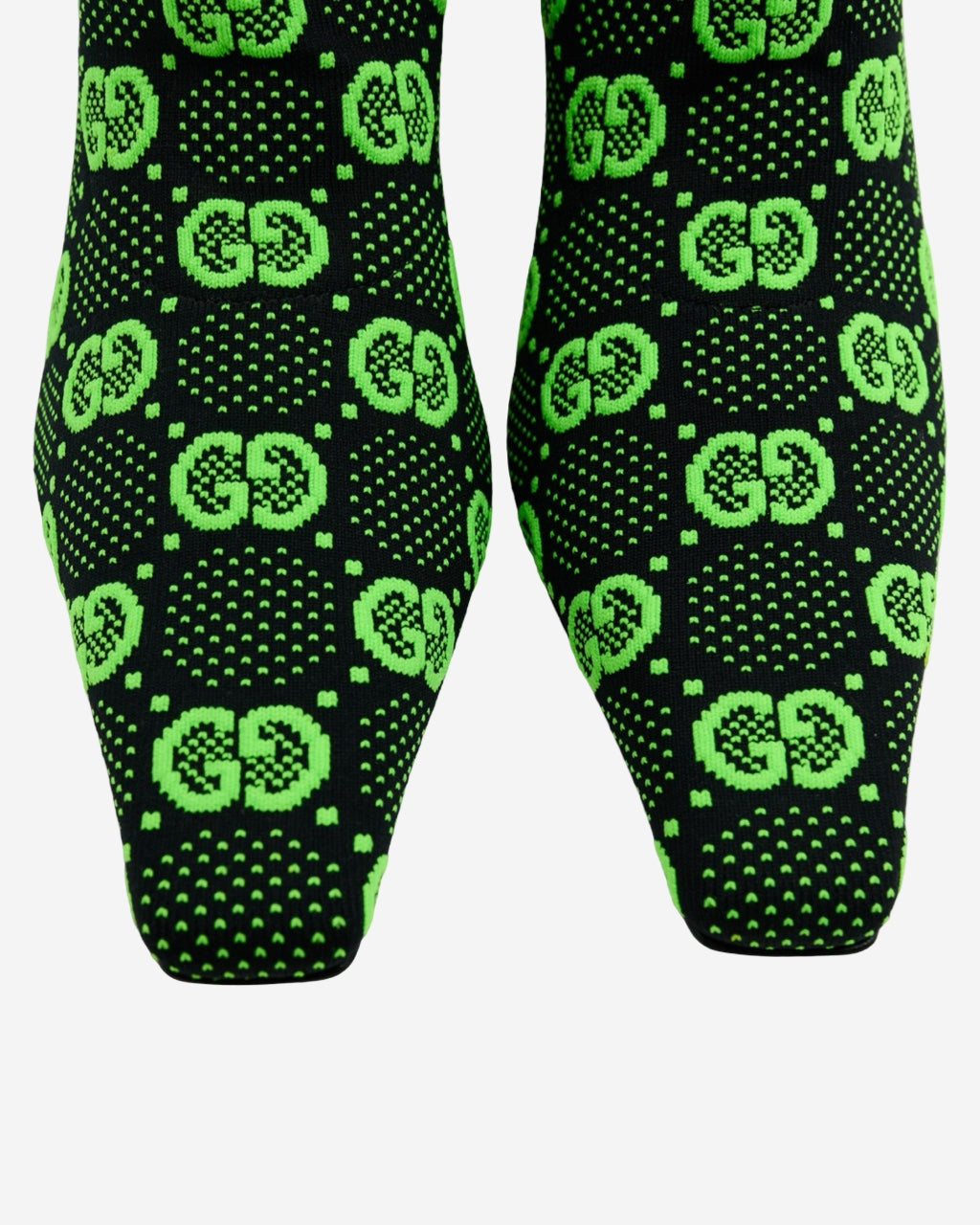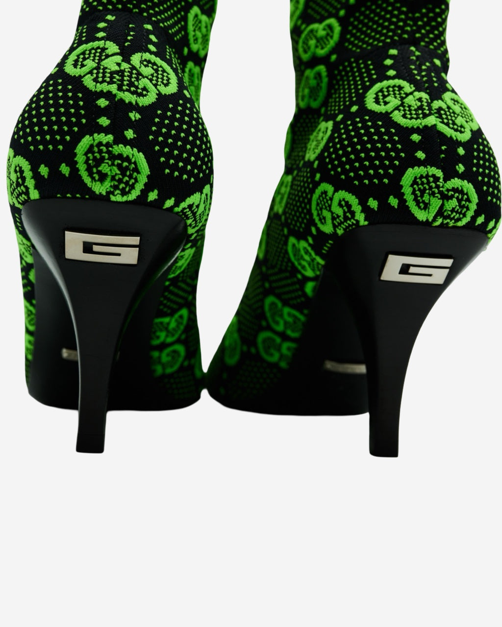 - Descripción: Botas Gucci tipo sock en color negro y verde, bordado GG supreme, puntera cuadrada, tacón mediano, largo arriba del tobillo