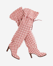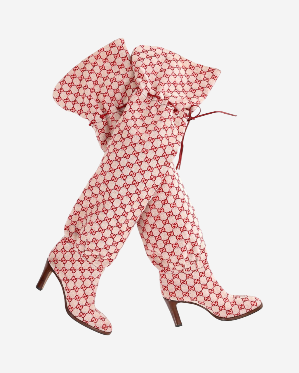• Descripción: Botas largas en canvas GG Supreme en color beige con rojo, puntera redondeada, tacón de madera, ajuste con cordón