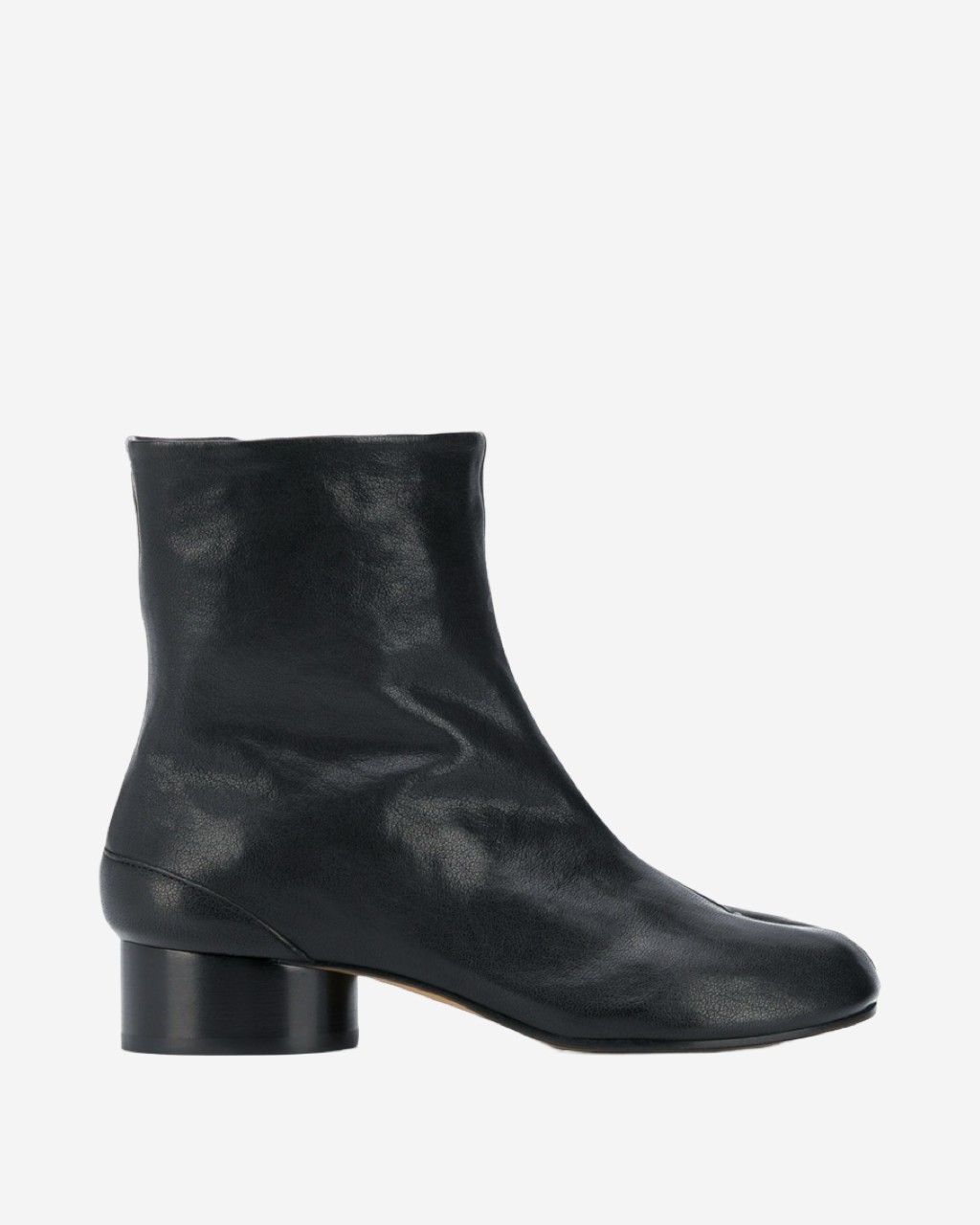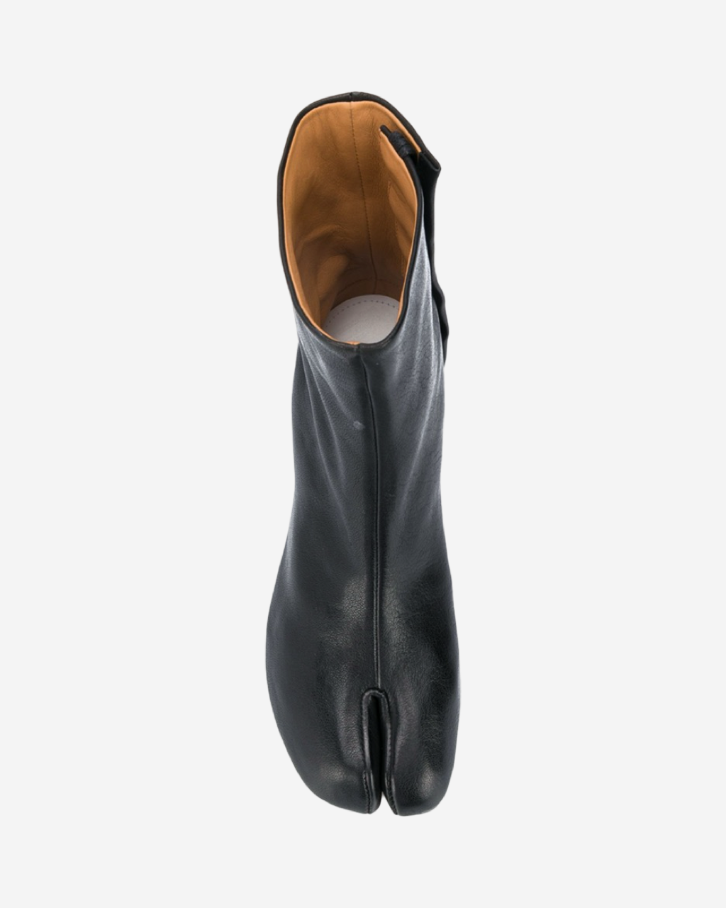 • Descripción: Botines tabi en piel color negro, largo al tobillo, puntera característica