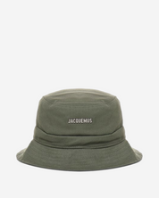 - Descripción: Bucket Hat en algodón color verde, placa de logo carcaterística frontal, hardware color plateado