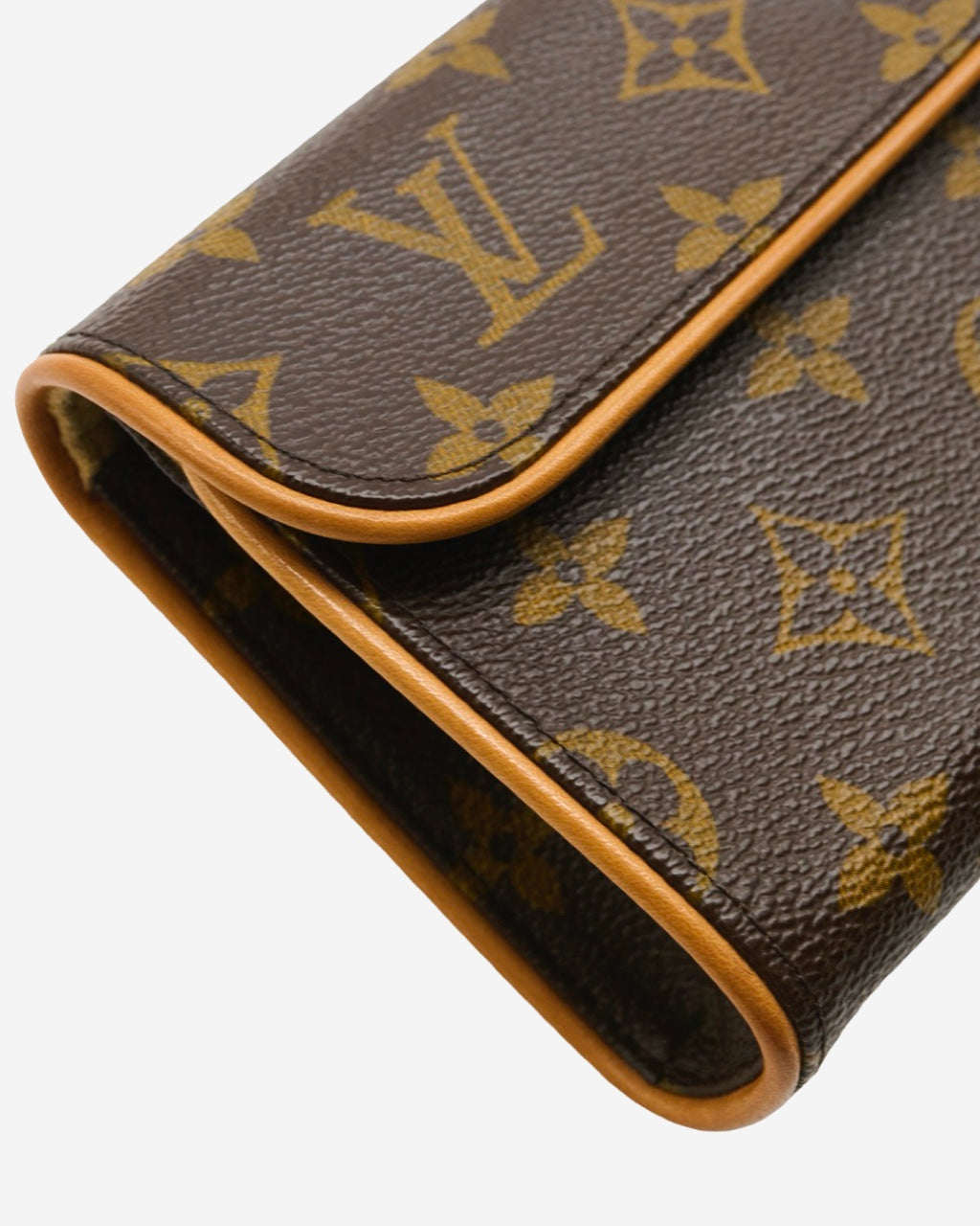 - Descripción: Cangurera Louis Vuitton en canvas monogram, abertura principal con solapa y broche metálico, forro interior en gamuza color beige, asa larga de piel, hardware en tono dorado