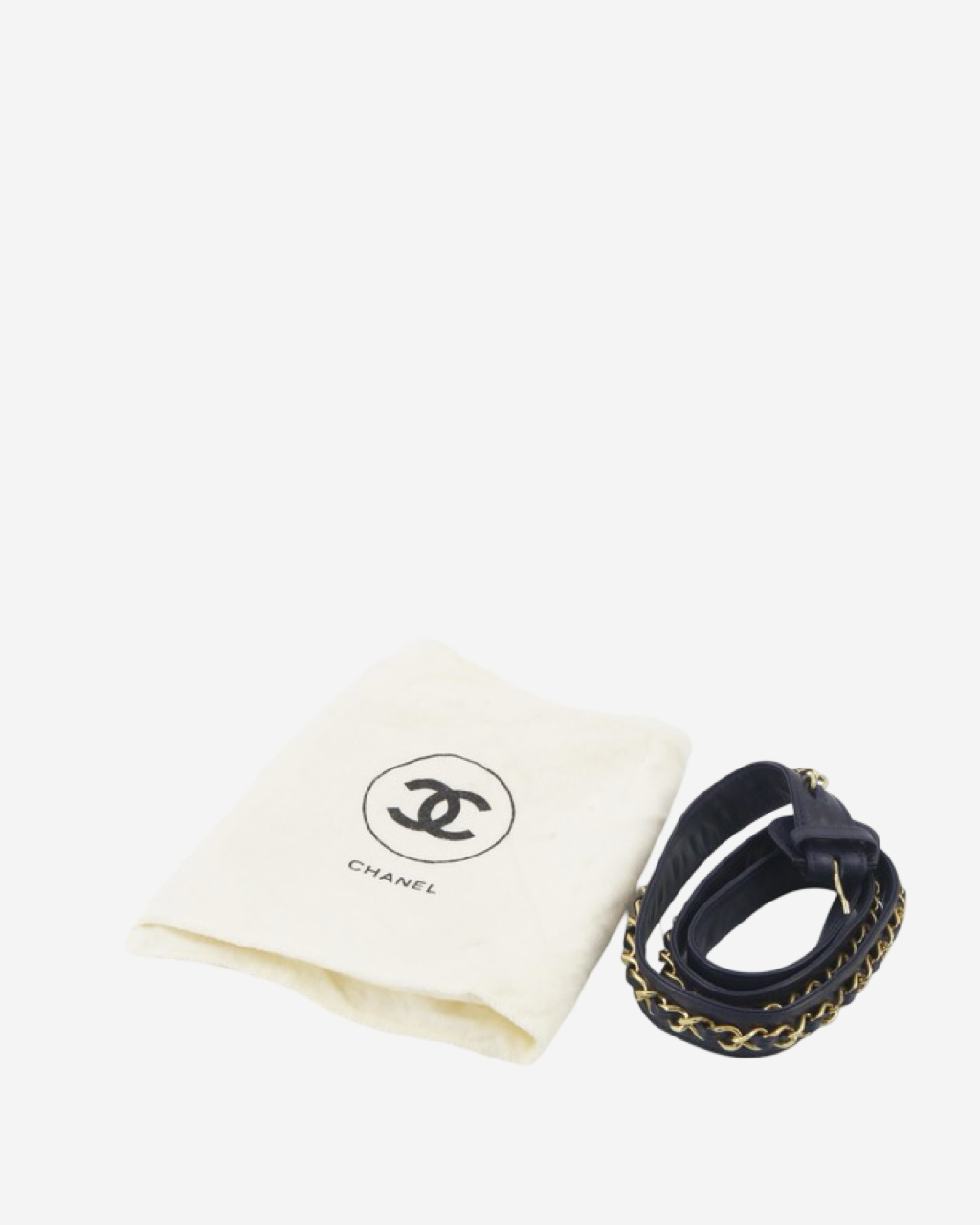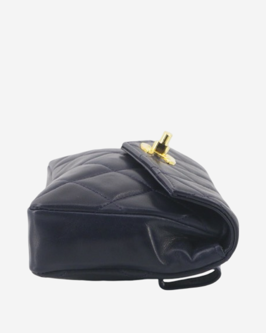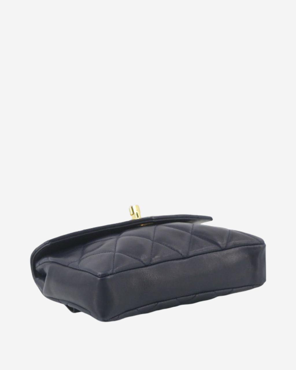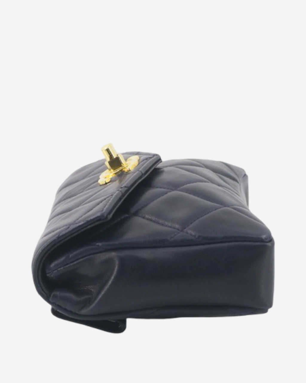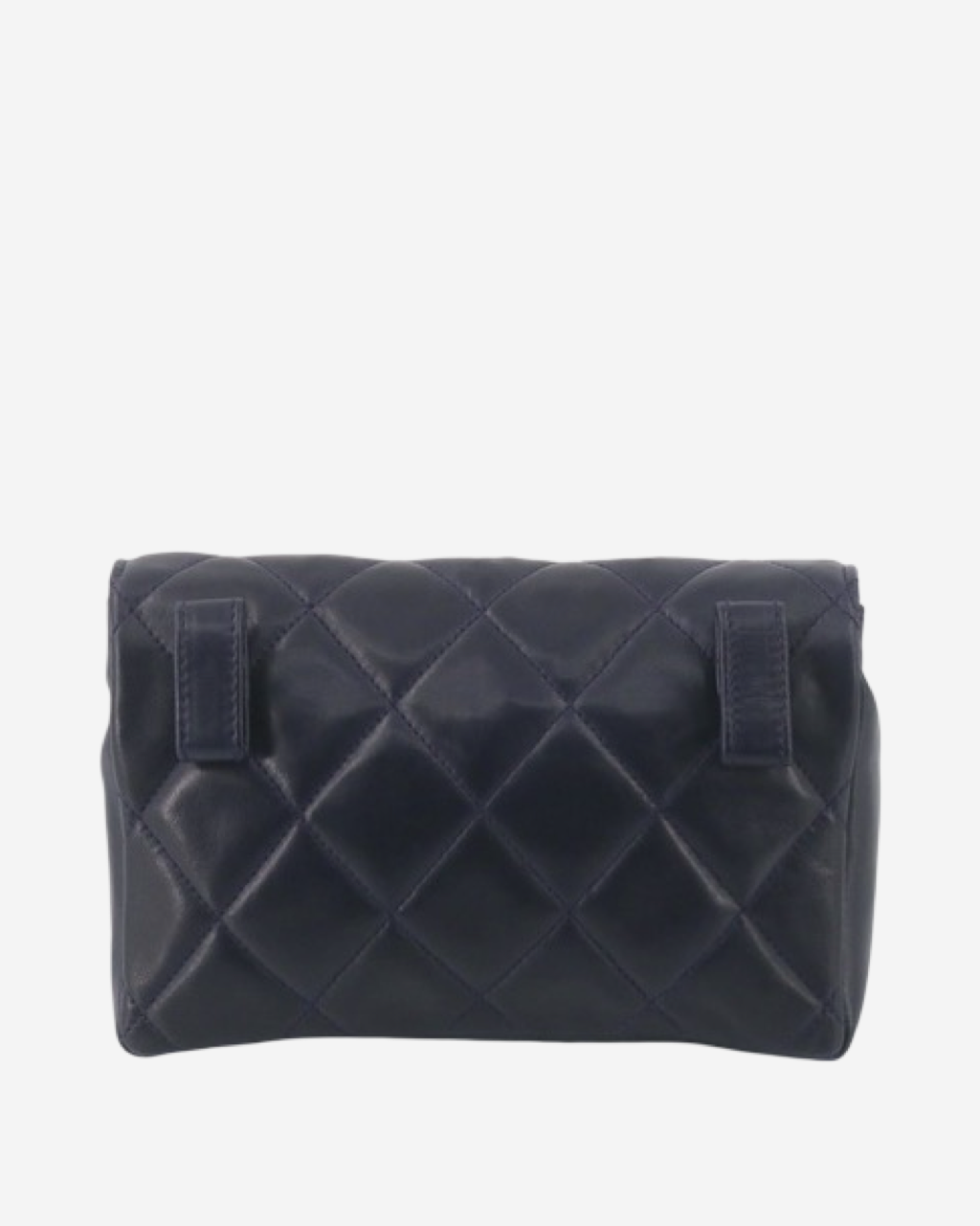 • Descripción: Cangurera en color azul, broche CC Turn Lock, interior en piel, broche en baño de oro 24k matelassé, hardware color dorado