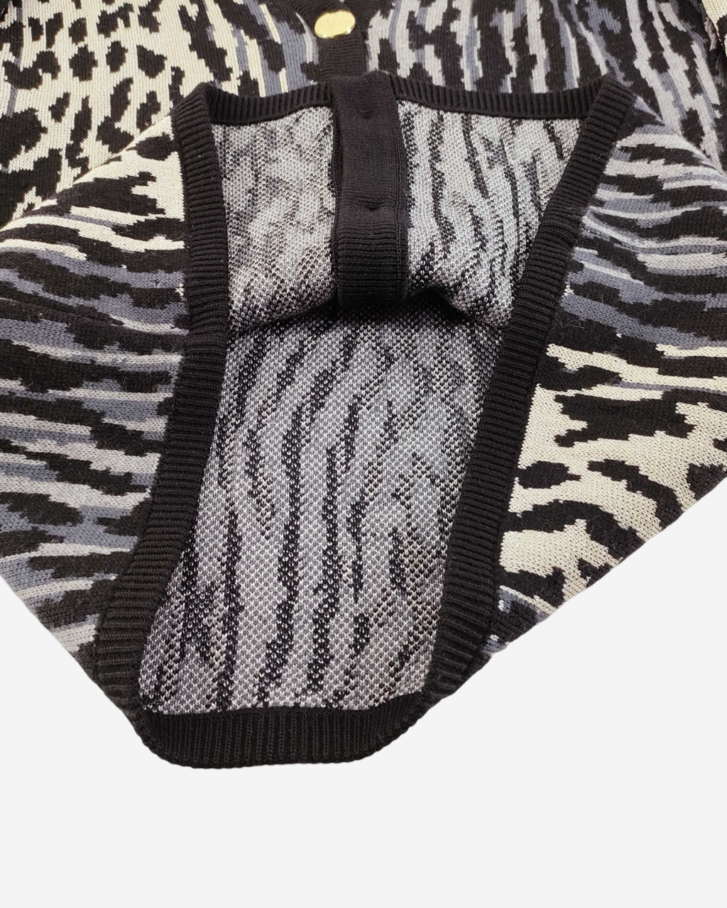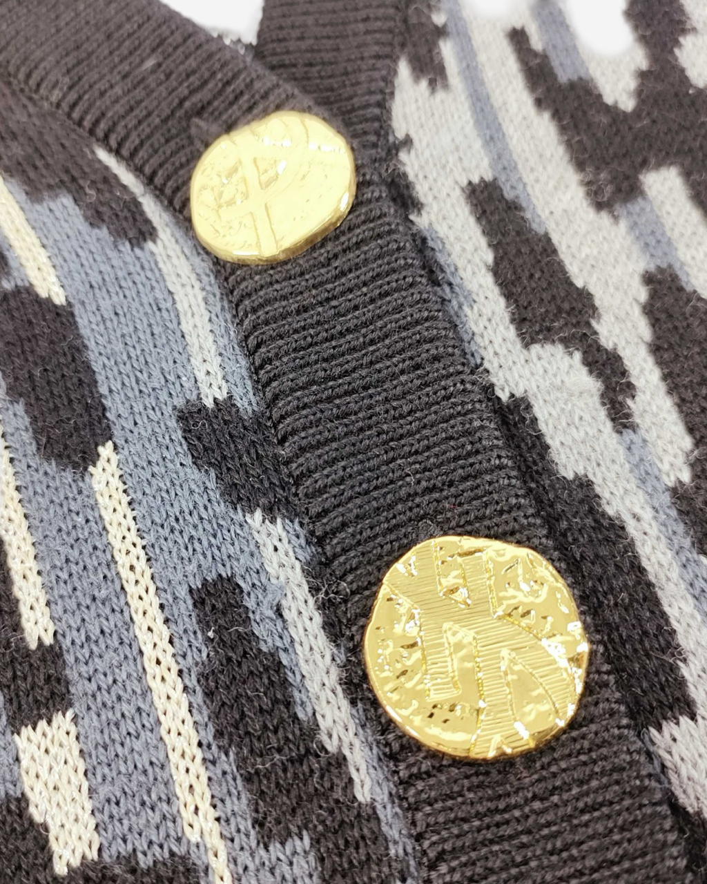 • Descripción: Cardigan Saint Laurent en animal print, cuello V, manga larga, ajuste con botones al frente