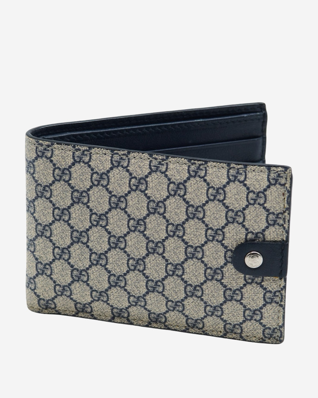• Descripción: Cartera pequeña en canvas GG Supreme en color beige, forro interior en piel color azul, compartimento para tarjetas y billetes, hardware en tono plateado