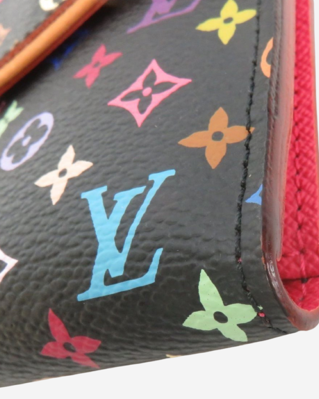 • Descripción: Cartera en piel Monogram multicolor, compartimiento con cierre en la parte trasera, compartimiento interno color rosa y espacio para tarjetas y billetes.