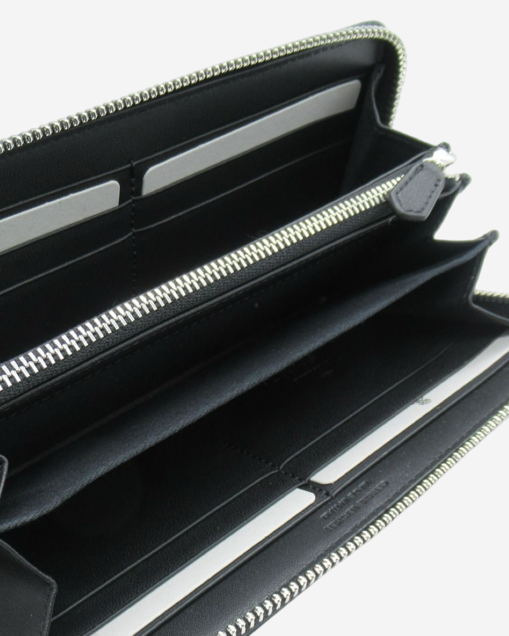 - Descripción: Cartera larga con cierre al tope, dije org característico frontal, compartimentos para tarjetas y billetes, hardware color plateado
